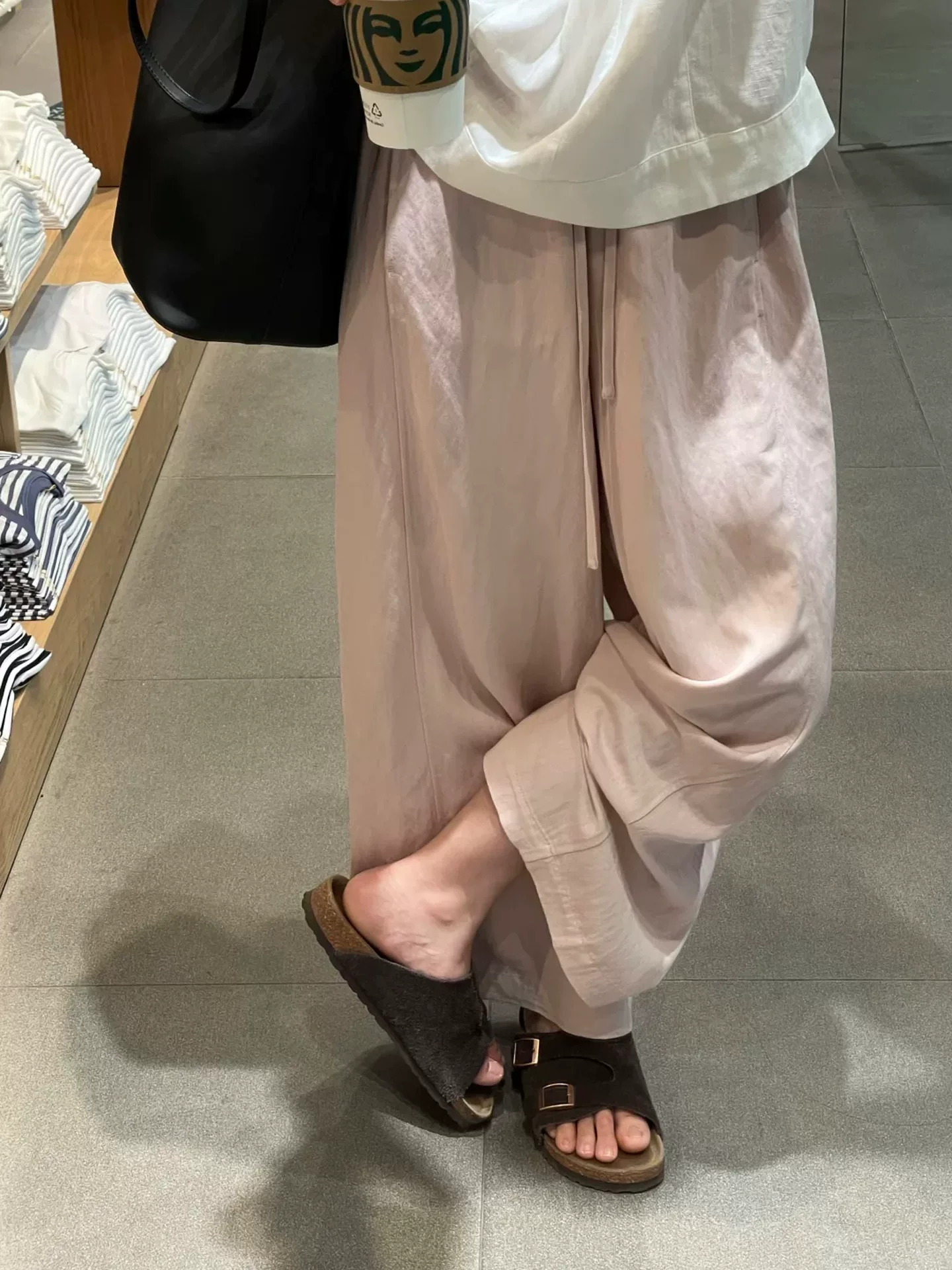 Quần vải lanh màu hồng dành cho nữ, quần vải lanh cotton nhẹ nhàng, cạp cao, dáng rộng, tôn dáng, size lớn, chất liệu vải lanh cotton, quần kiểu dáng lưỡi liềm chất liệu lụa đá mùa hè.