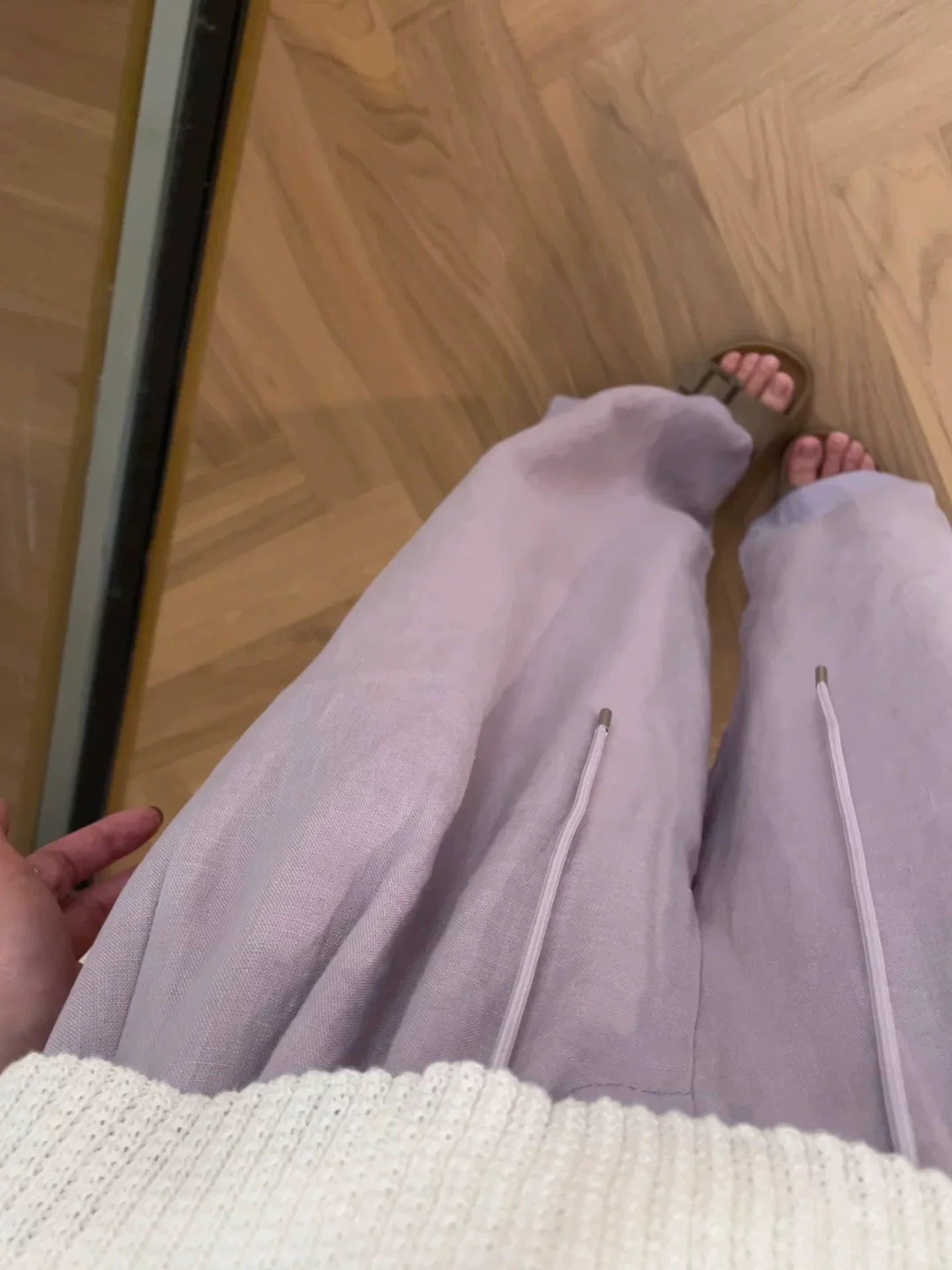 - Quần vải lanh màu hồng tím dành cho nữ, kiểu mới hè 2025, size lớn, cạp cao, chất liệu mềm mại, tôn dáng, quần ống rộng chất liệu lụa đá.