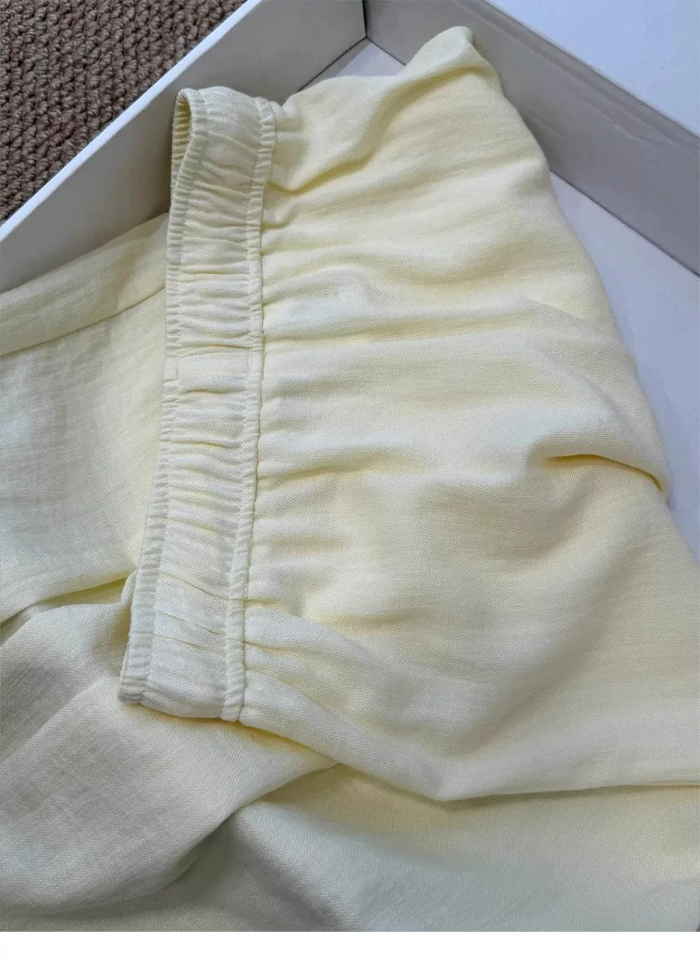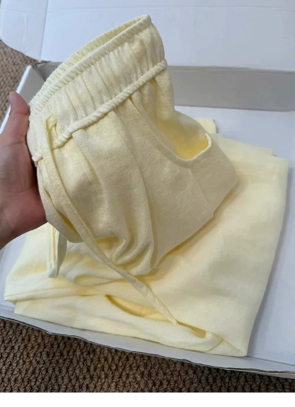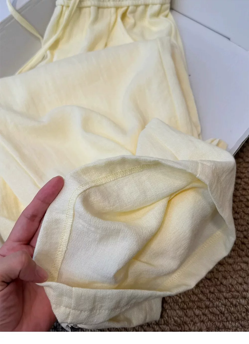 - Quần vải lanh màu vàng dành cho nữ, kiểu dáng mỏng mùa hè, cỡ lớn, lưng cao, dáng suôn, tôn dáng, phong cách lười biếng, quần ống rộng bằng vải lụa mát mẻ.