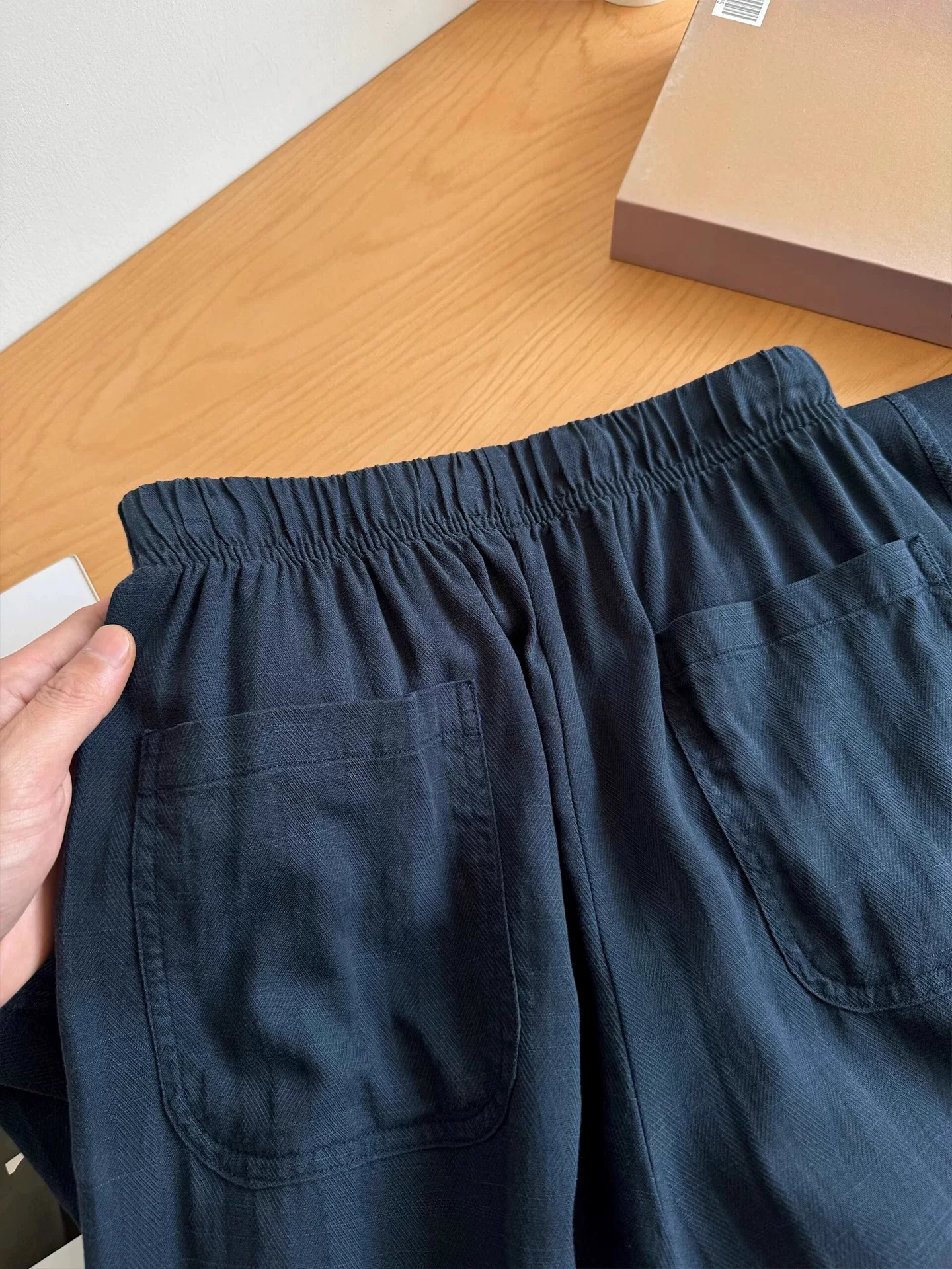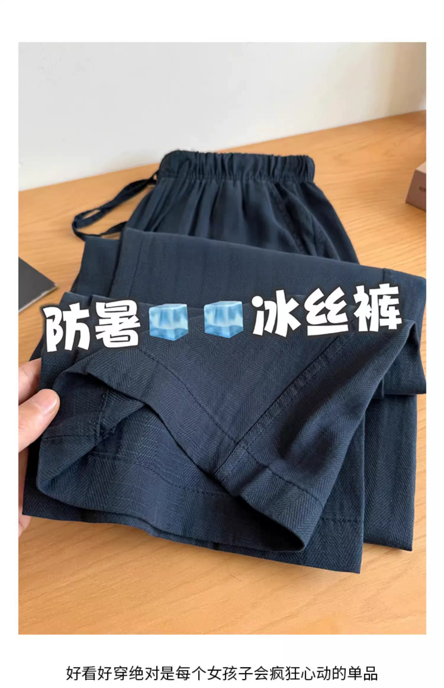 Quần vải lanh Tencel màu xanh hải quân dành cho nữ, kiểu dáng mỏng mùa hè, cỡ lớn, lưng cao, che hông, giảm béo, quần ống rộng bằng vải lụa băng.