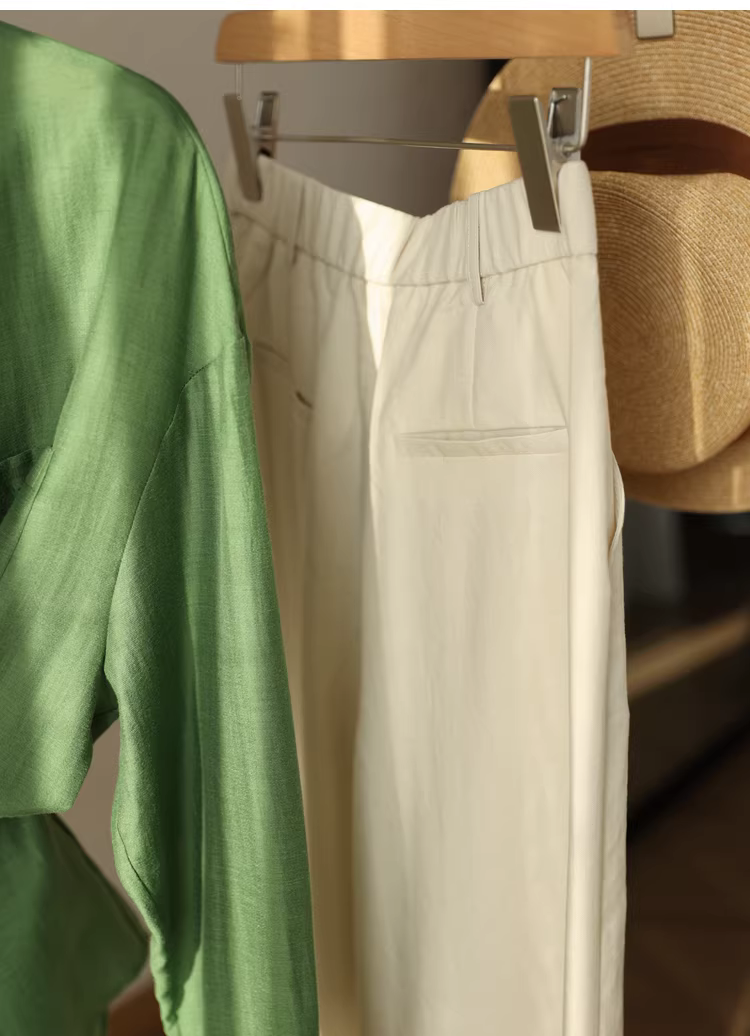 Quần vải lanh thoải mái và không nhăn! Quần ống đứng thông thường, mát mẻ và mỏng, quần ống rộng lưng cao dành cho nữ, mới cho mùa hè.