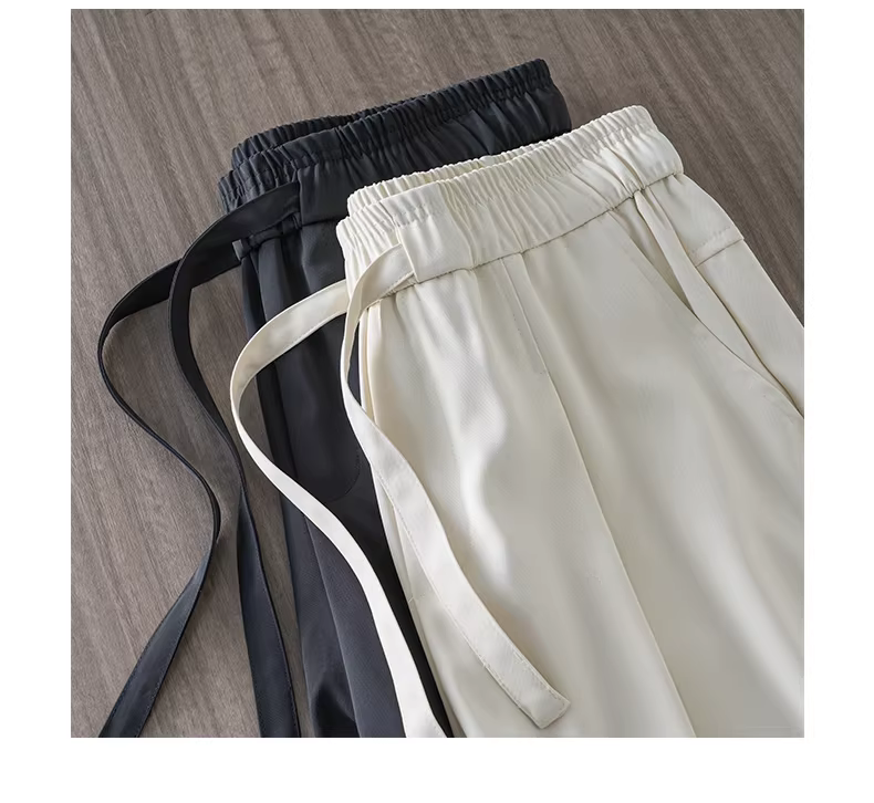 - Quần vải lụa đá kiểu Mỹ thuần túy dành cho nam, mẫu mới xuân 2024, quần suông dáng rộng, quần kaki thẳng ống thoáng mát, phong cách thường ngày
