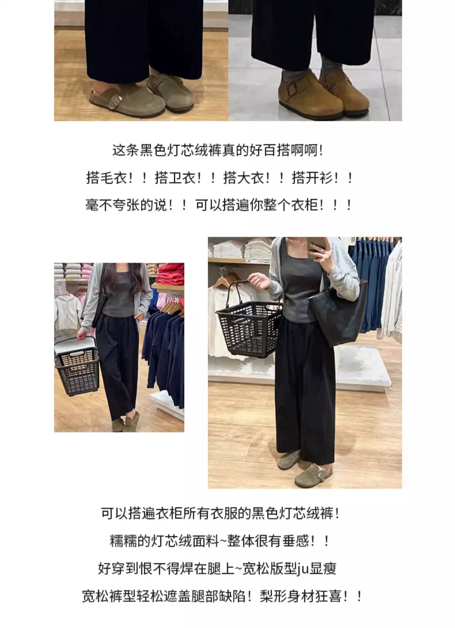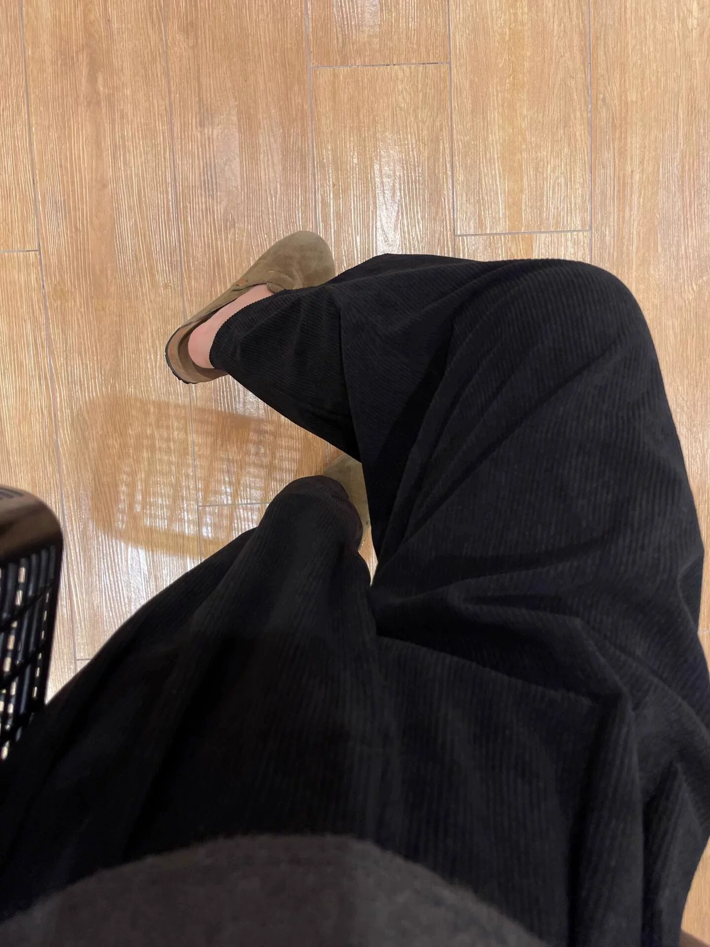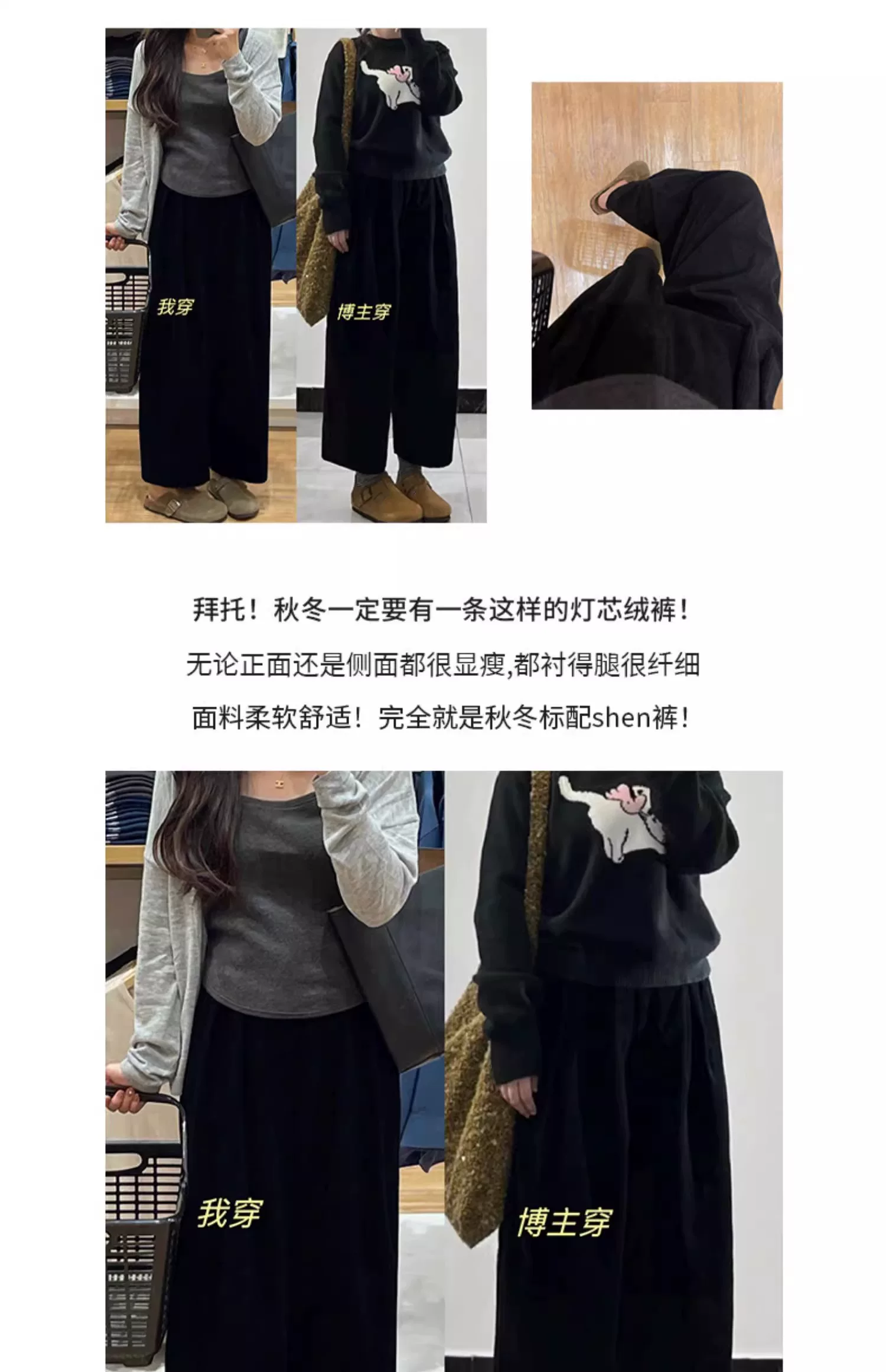 - Quần vải nhung đen thường ngày dành cho nữ, cỡ lớn, mùa thu đông, lót lông cừu, dày dặn, phong cách lười biếng, lưng cao, giảm béo, quần ống rộng.