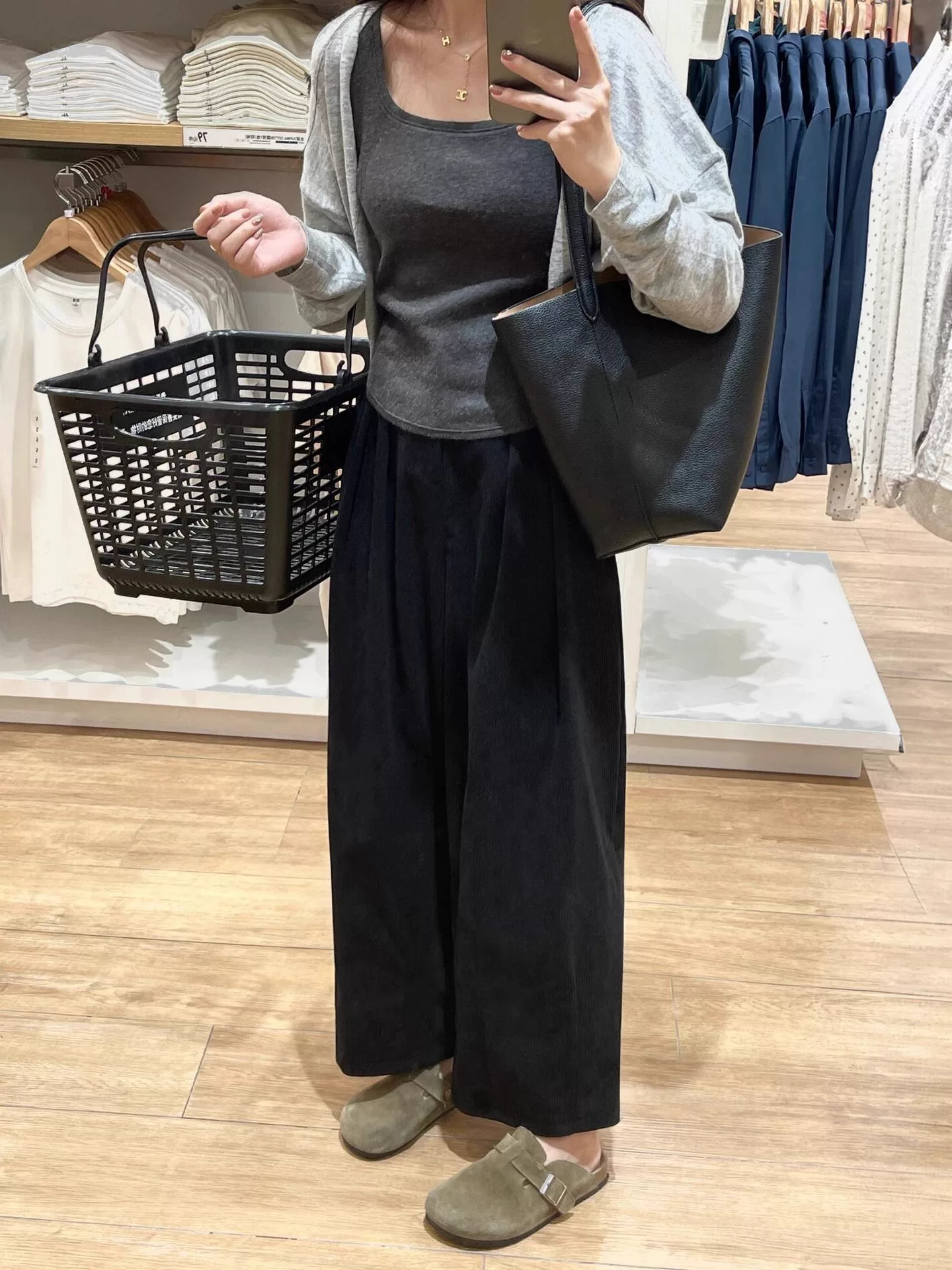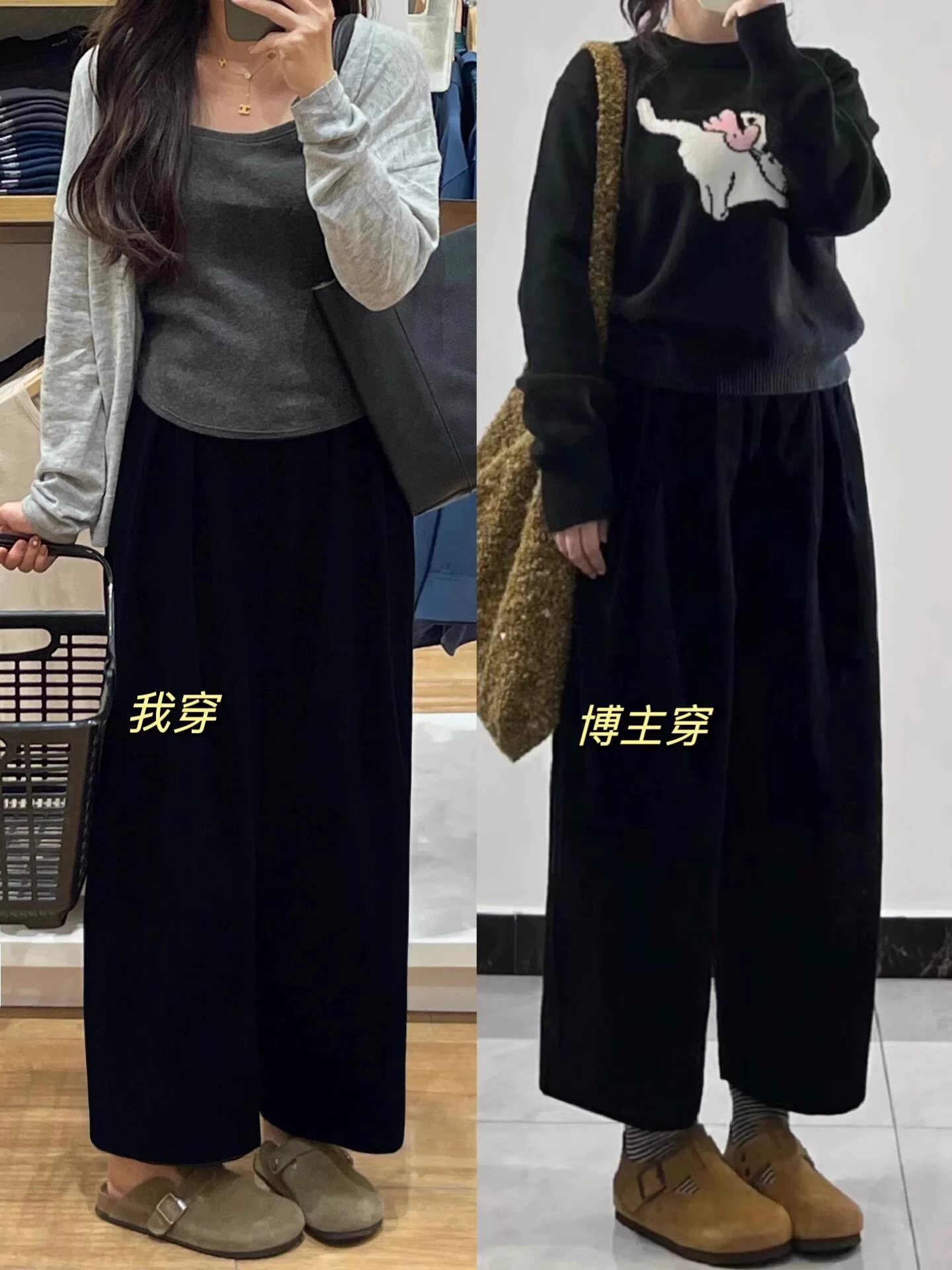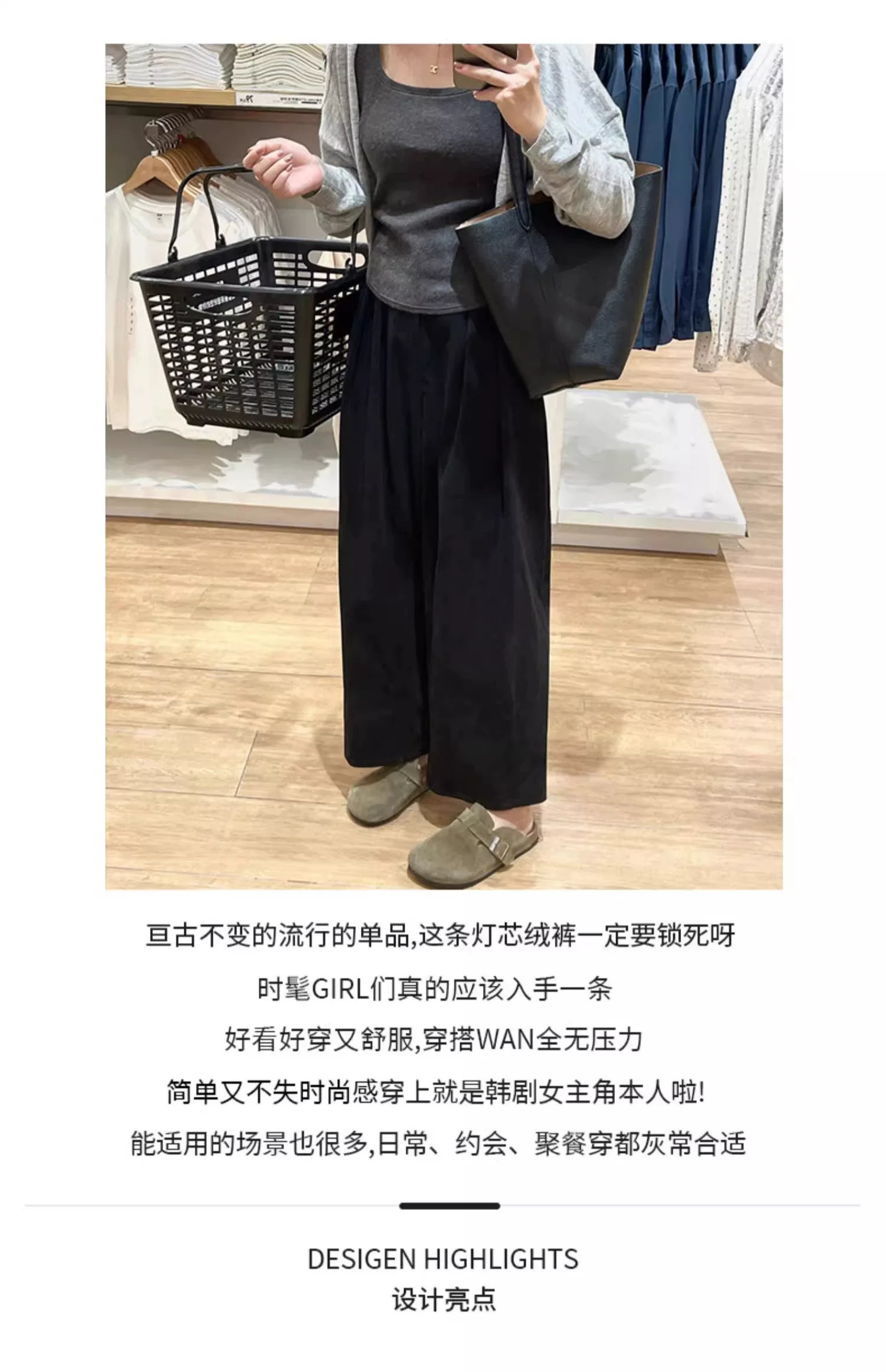 - Quần vải nhung đen thường ngày dành cho nữ, cỡ lớn, mùa thu đông, lót lông cừu, dày dặn, phong cách lười biếng, lưng cao, giảm béo, quần ống rộng.