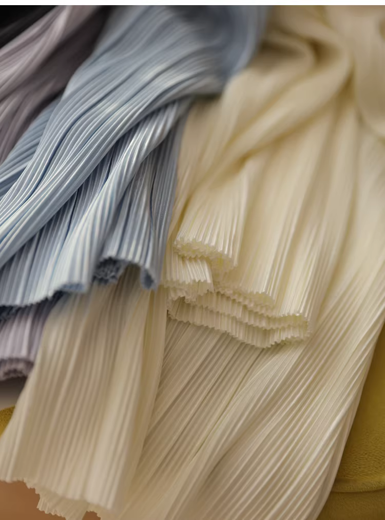 亮丝材质,热压定型,将二维平面折叠成三维风琴褶浪涌