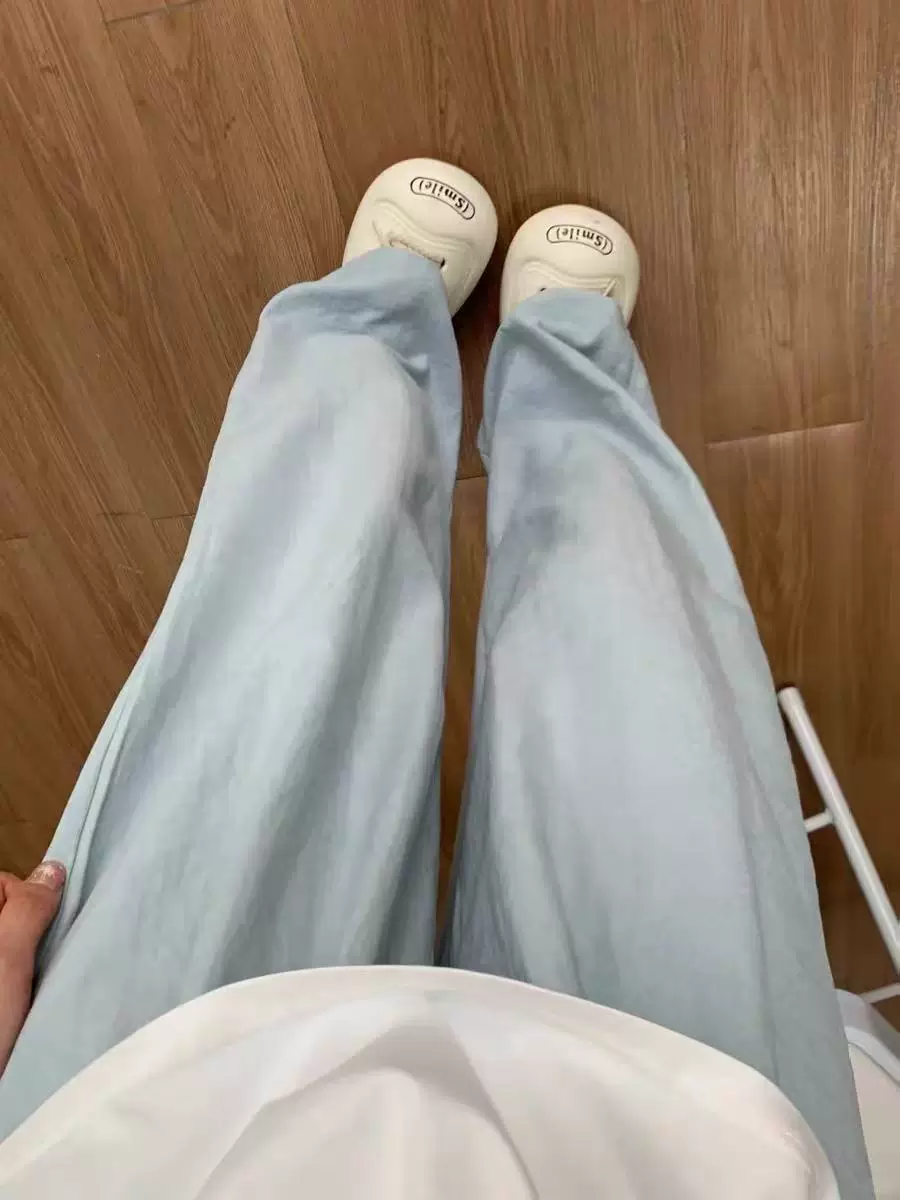 Quần Yamamoto bằng lụa sữa màu xanh lam dành cho nữ, kiểu dáng mỏng mùa hè, cỡ lớn, lưng cao, dáng rộng, mềm mại, tôn dáng, quần ống rộng thông thường bằng vải lụa băng.