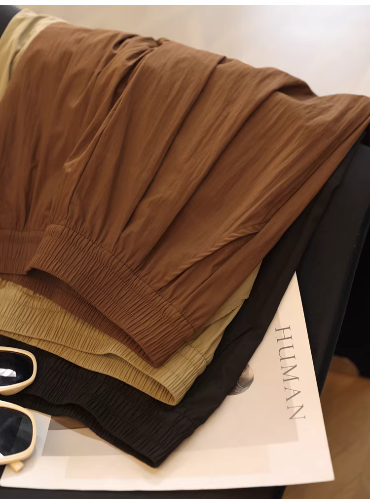 Quần Yamamoto hơi nhăn, cảm giác mát mẻ! Siêu nhẹ~ Eo co giãn, dáng rộng, quần ống rộng thẳng giúp thon gọn cho nữ, quần mùa hè mỏng.
