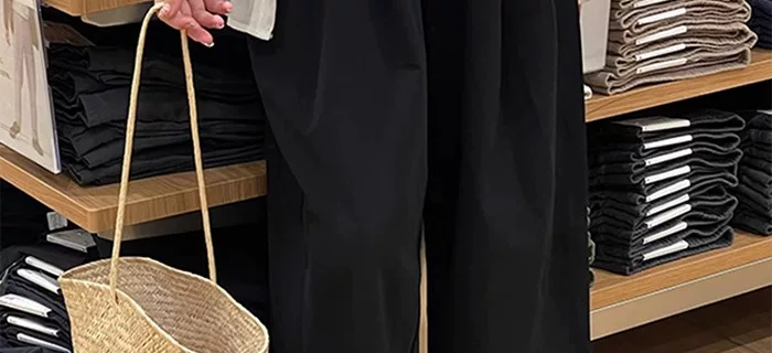 Quần Yamamoto ống rộng bằng vải lụa đen dành cho nữ, cỡ lớn mùa hè, lưng cao, dáng rộng, thon gọn, quần ống rộng dáng thẳng thường ngày