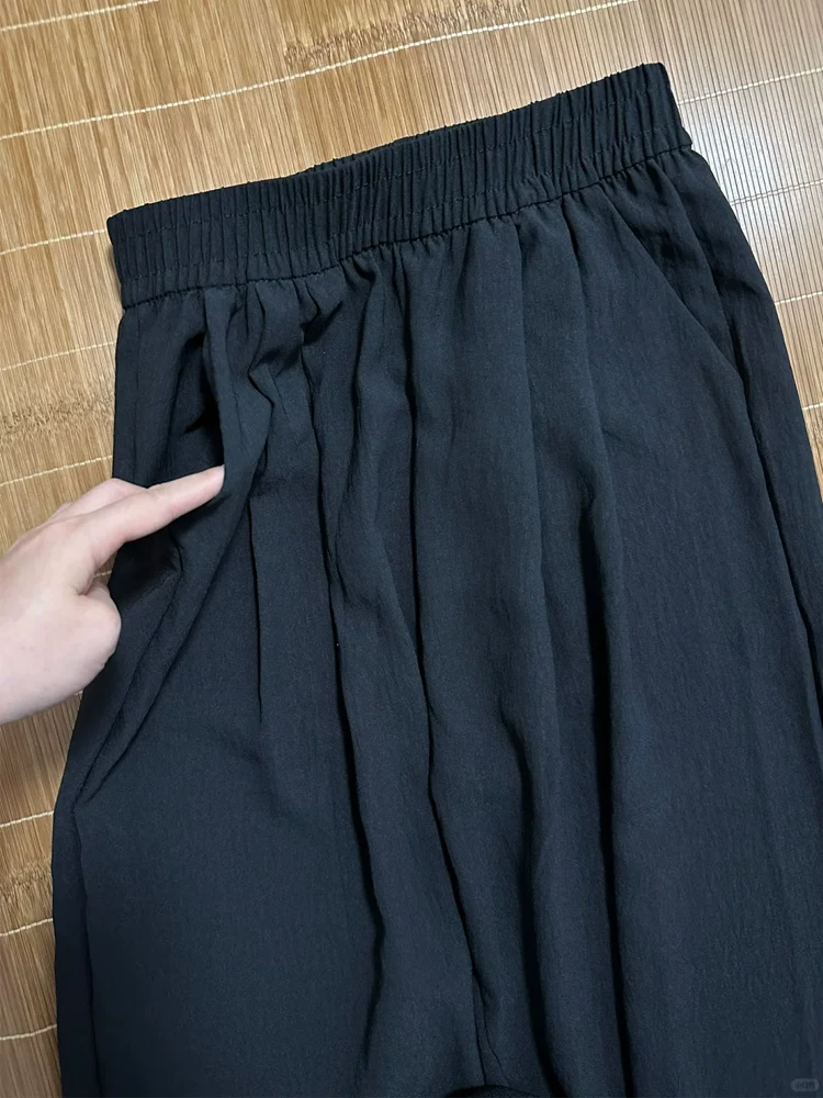 - Quần Yamamoto thường ngày dành cho nữ, kiểu dáng mỏng mùa hè, cỡ lớn, lưng cao, dáng suôn, tôn dáng, dành cho người có thân hình quả lê, quần ống rộng dài chạm sàn bằng vải lụa băng