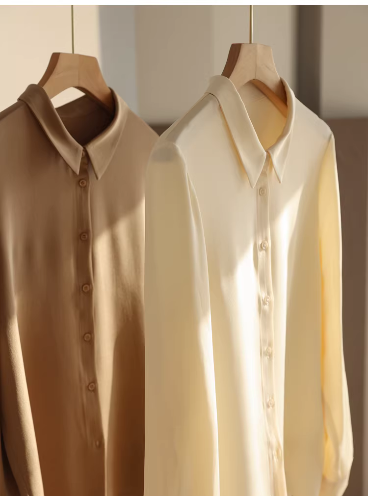 Sang trọng! Áo sơ mi lụa nặng 30mm, 100% lụa dâu tằm, mật độ cao, dày dặn, ve áo nhỏ, áo công sở dành cho nữ, mùa xuân.