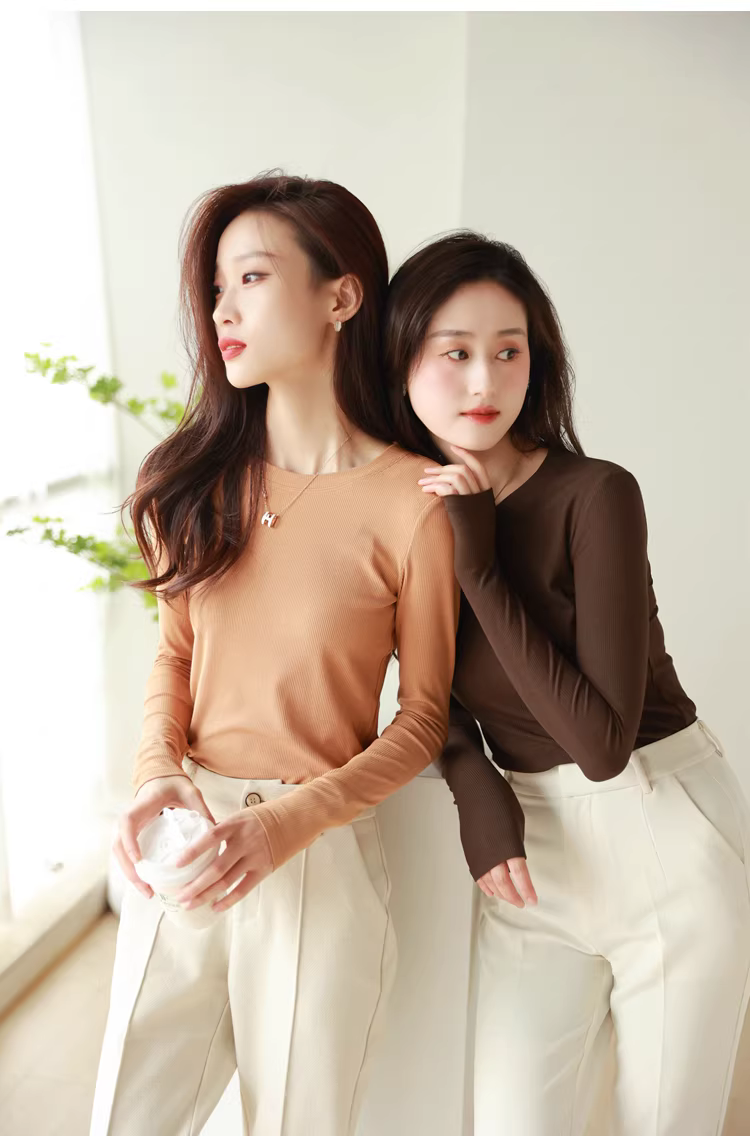 【Siêu giá trị】Lớp lót lông cừu có độ đàn hồi cao, ấm áp và tạo nhiệt dành cho nữ, thích hợp cho mùa thu đông, cổ cao/cổ tròn, tay dài.