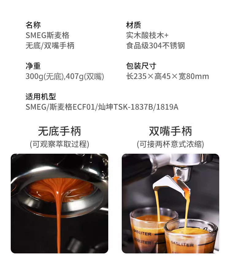 - SMEG/Smeg ECF01/Changkun TSK-1837B/1819A tay cầm máy pha cà phê không đáy có tay cầm đôi