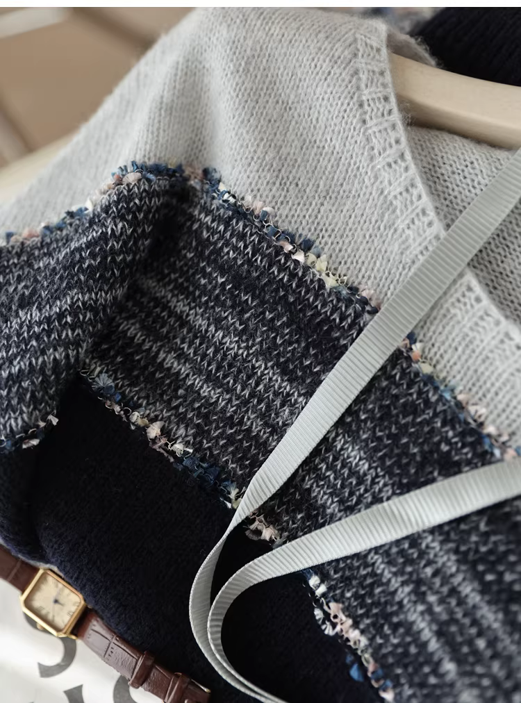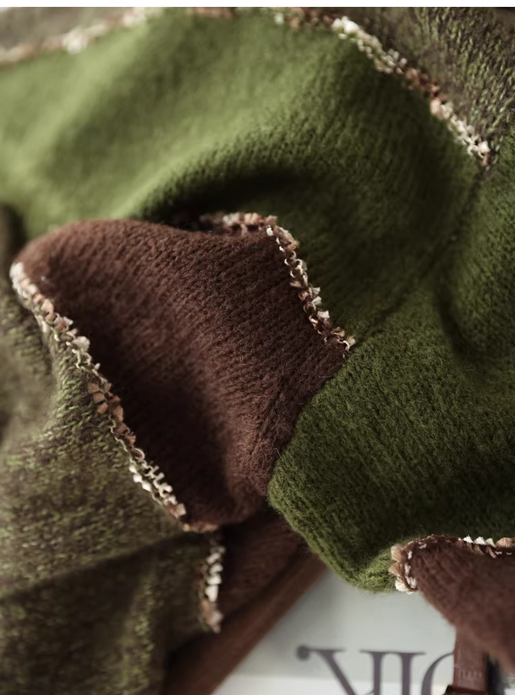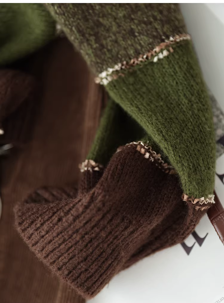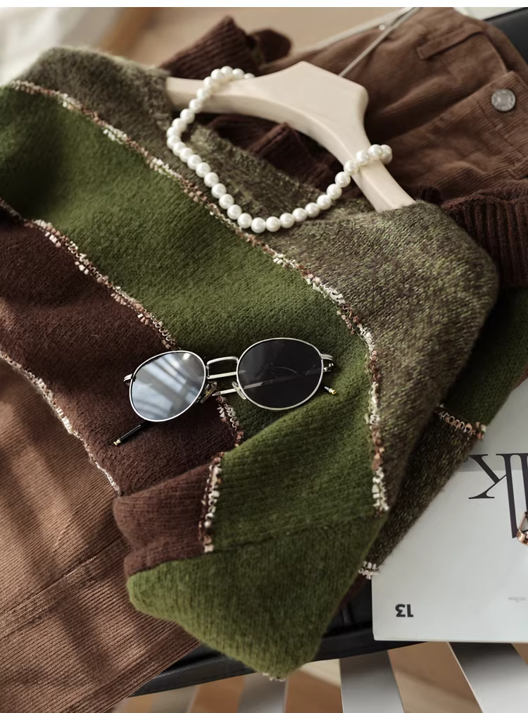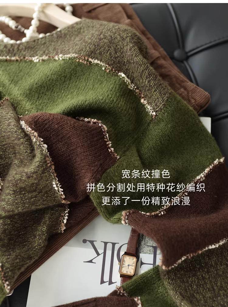 - Sôcôla matcha! Áo len len cashmere lười biếng có sọc tương phản, áo len dệt sợi đặc biệt dành cho nữ, mới cho mùa thu.