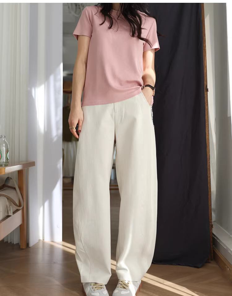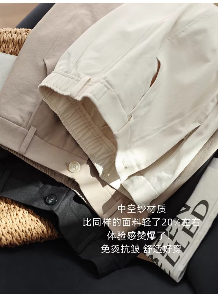 Sợi rỗng chống nhăn! Màu trắng và mờ! Quần nữ nhẹ, thoáng khí, cạp cao, dáng cong, cắt kiểu dao, quần dài rộng rãi, thoải mái.