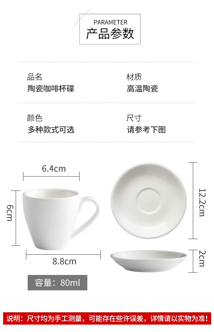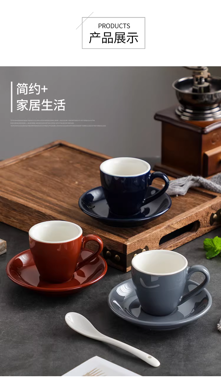 Tách cà phê espresso Ý, gốm sứ dày kiểu châu Âu, tách cà phê đơn giản và tinh tế, bộ tách và đĩa hoàn chỉnh, 80ml