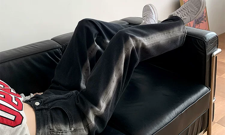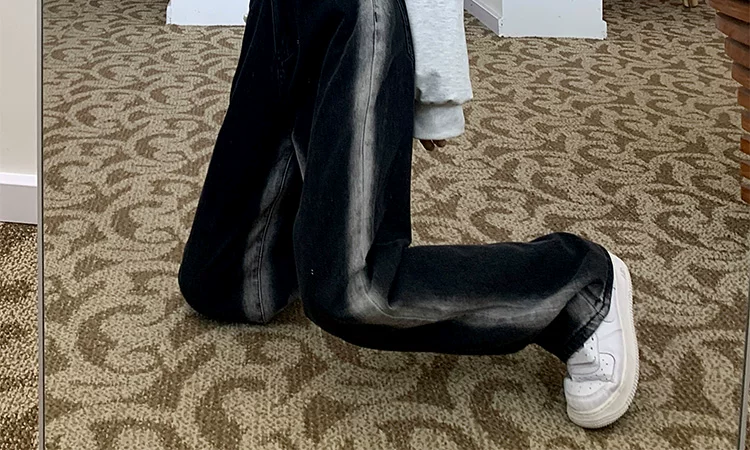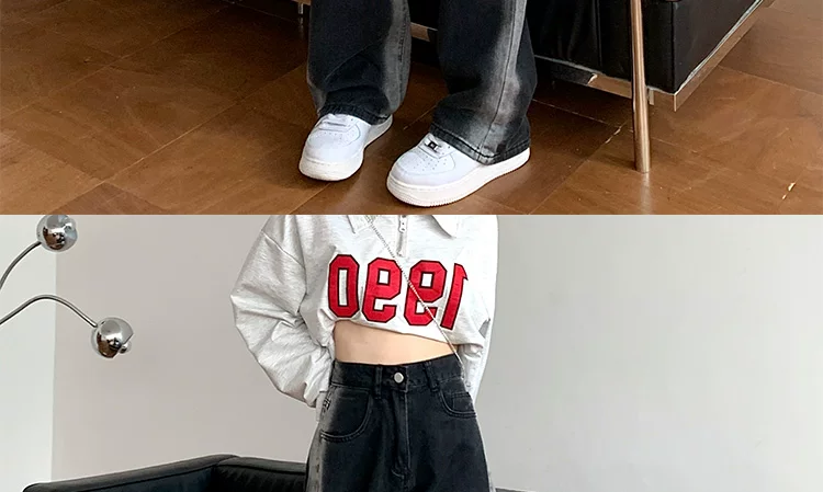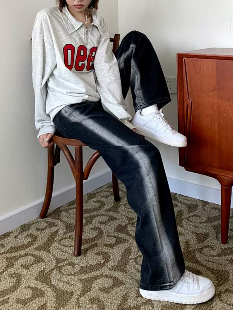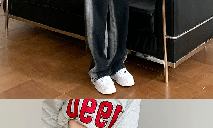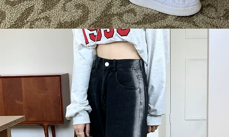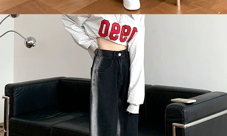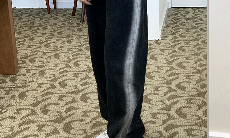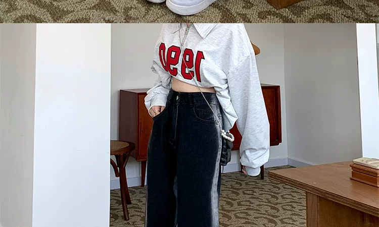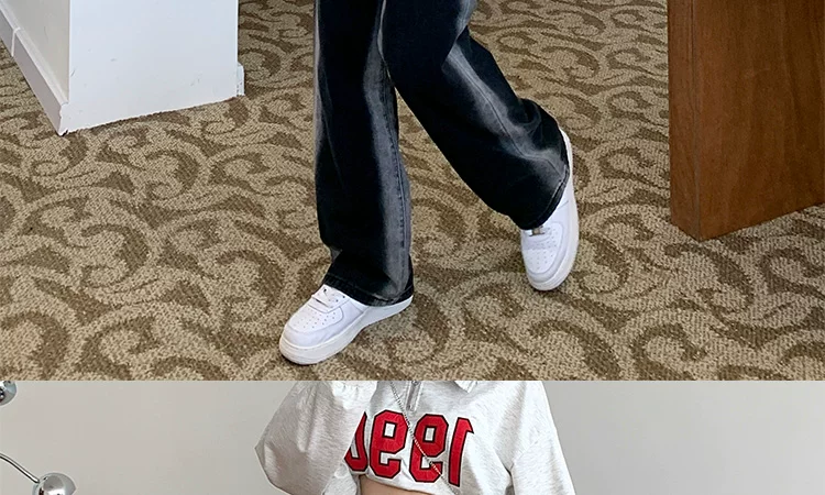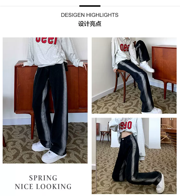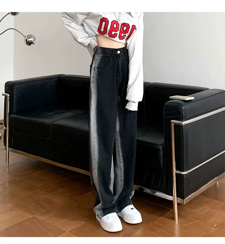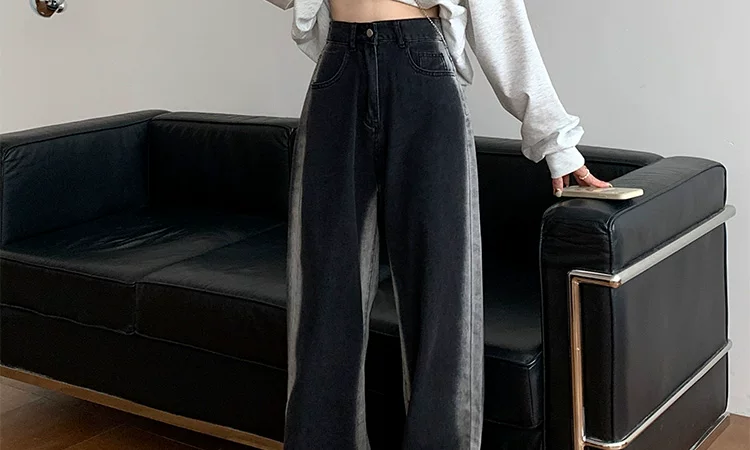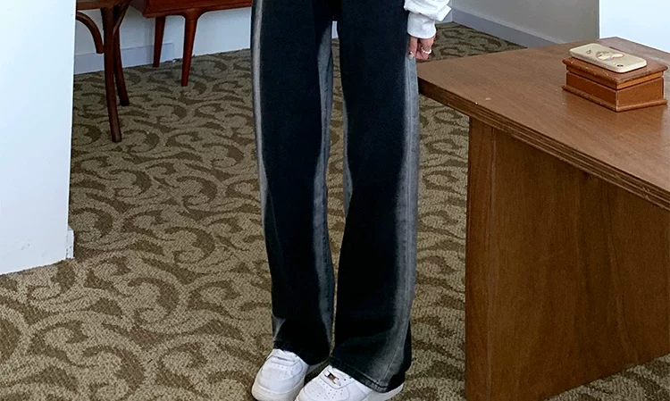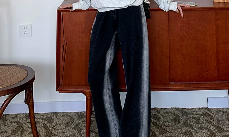 - Thân hình quả lê, hông và đùi dày, quần jean giảm béo cho nữ, mặc đầu thu, cỡ lớn, dáng rộng, quần ống rộng dáng thẳng giảm béo