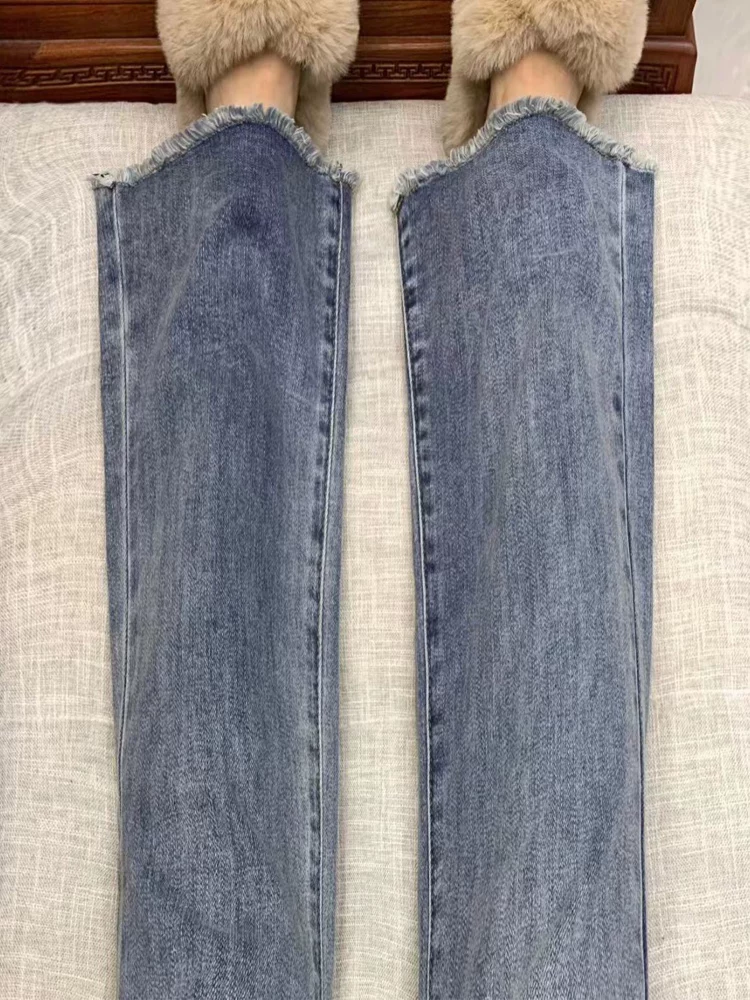 - Thân hình quả lê, quần jean ống thẳng hơi loe dành cho nữ, trang phục cỡ lớn đầu thu, quần ống loe co giãn che hông, cạp cao, giúp giảm béo dành cho phụ nữ mũm mĩm.