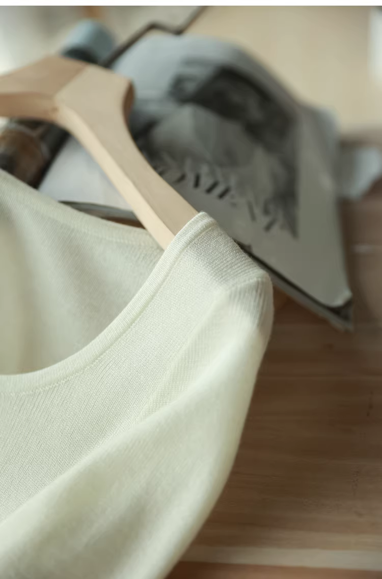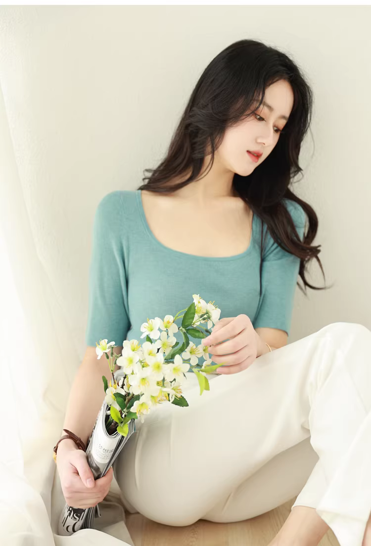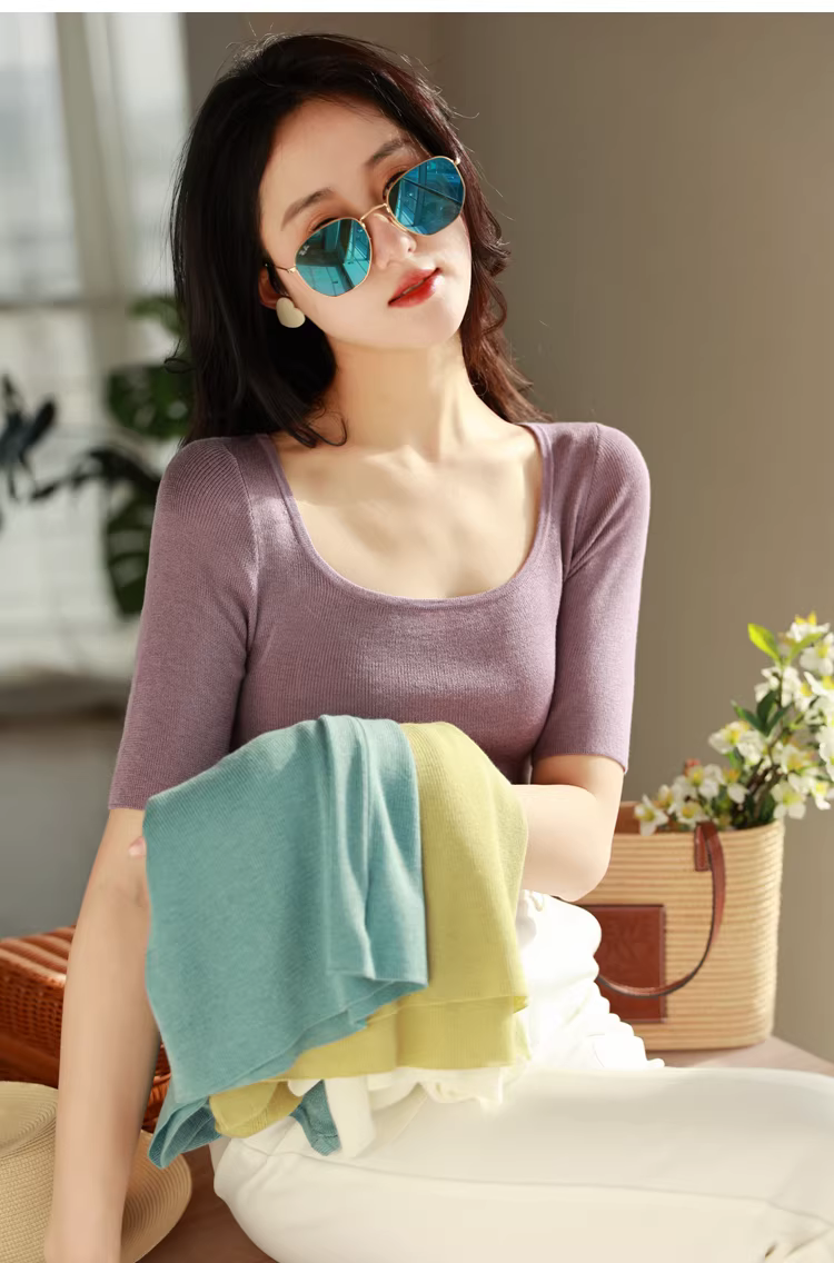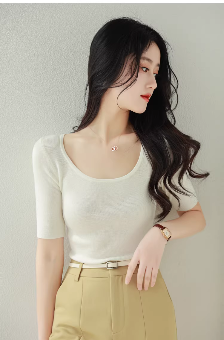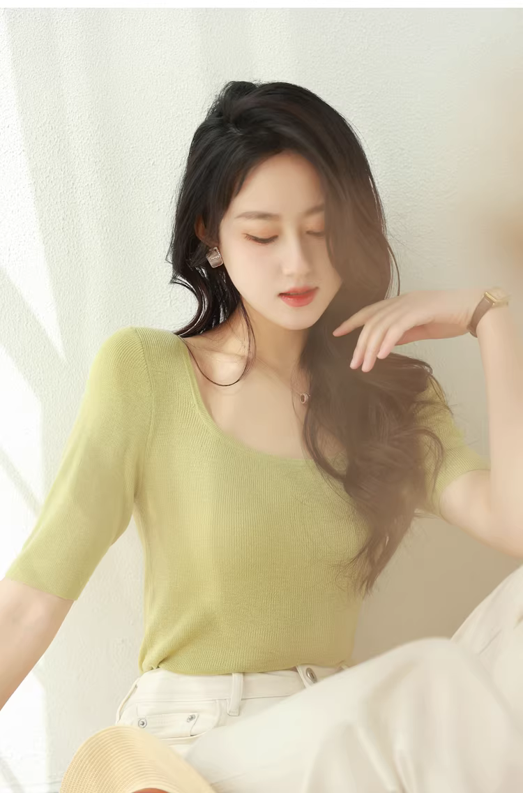 - Thanh lịch vừa vặn~ Áo dệt kim dáng ôm cổ vuông kiểu Pháp bằng len lụa dành cho nữ, mới dành cho mùa xuân hè.