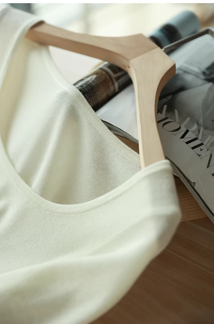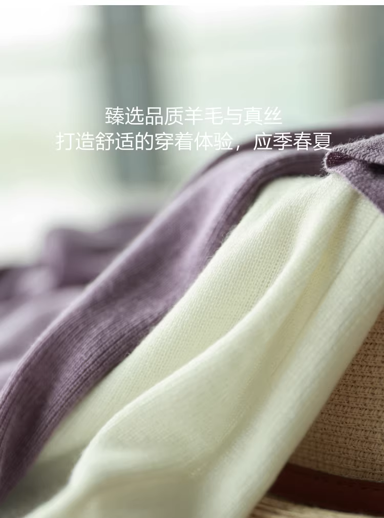 Thanh lịch vừa vặn~ Áo dệt kim dáng ôm cổ vuông kiểu Pháp bằng len lụa dành cho nữ, mới dành cho mùa xuân hè.