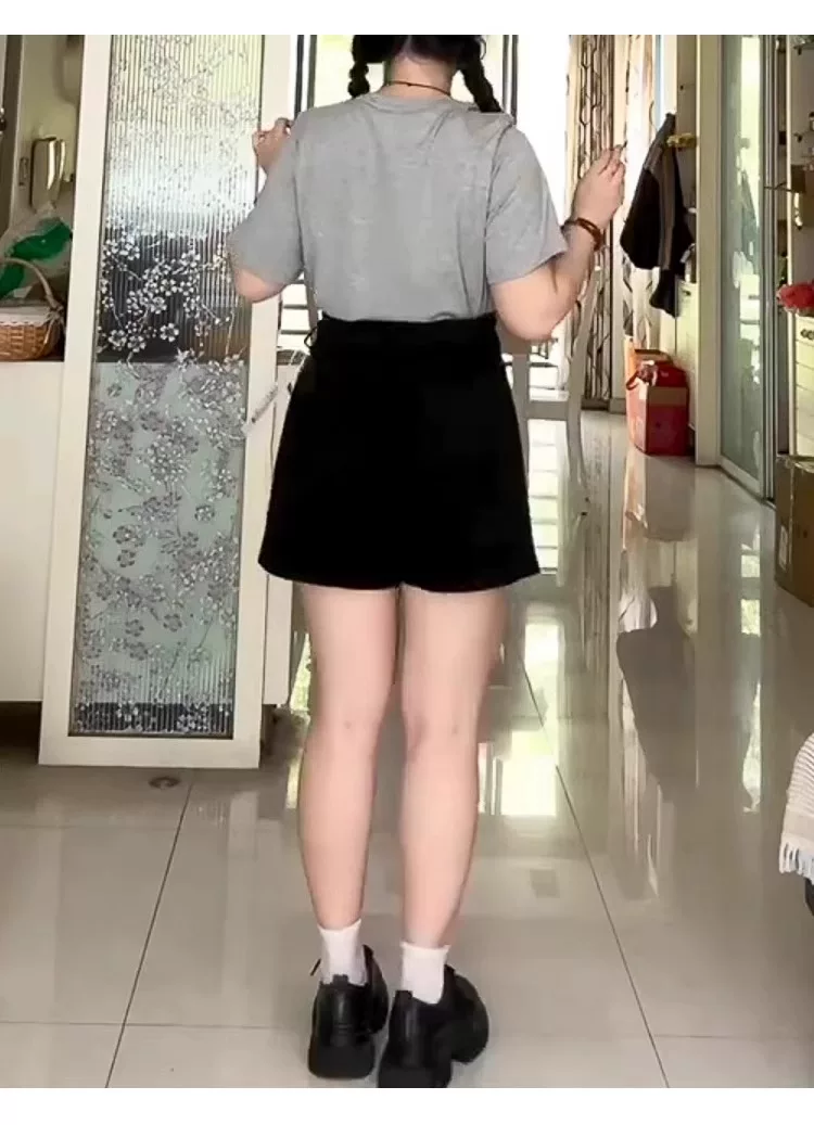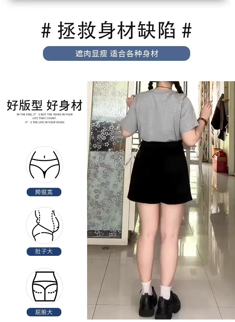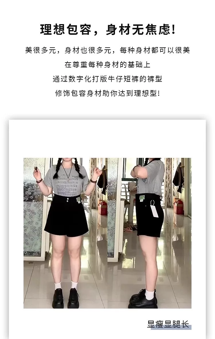 - Thích hợp cho phụ nữ có hông và đùi dày, quần short denim cho mùa hè, cỡ lớn, cạp cao, co giãn, che bụng, giảm béo, quần ống rộng dáng chữ A.