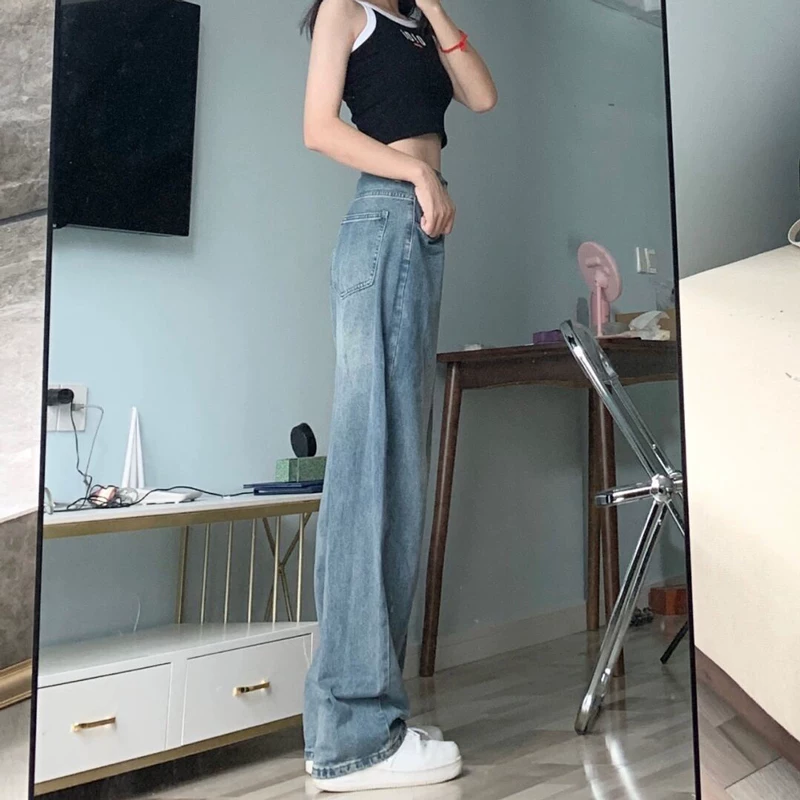 - Thiết kế dáng quả lê, quần jean nữ có thể điều chỉnh, đầu thu, size lớn, cạp cao, tôn dáng, quần ống rộng mềm mại