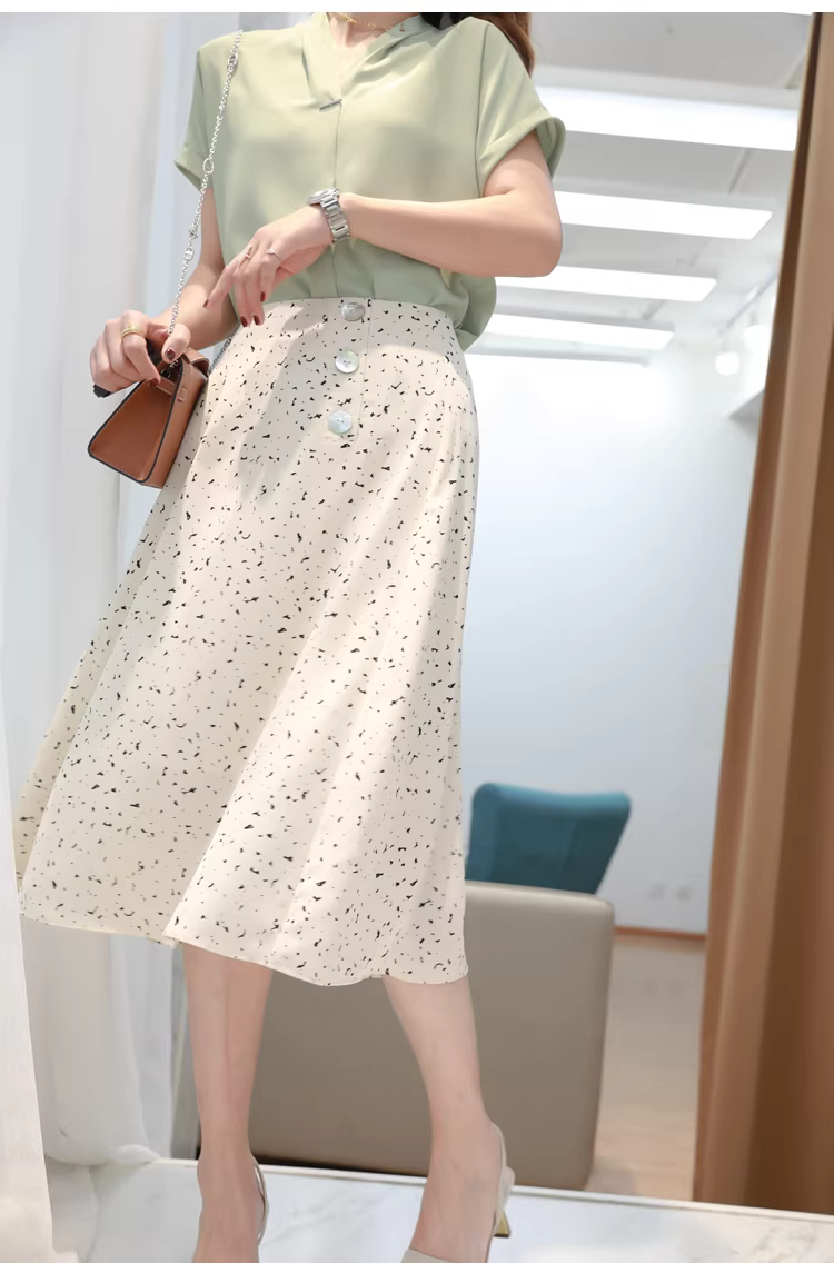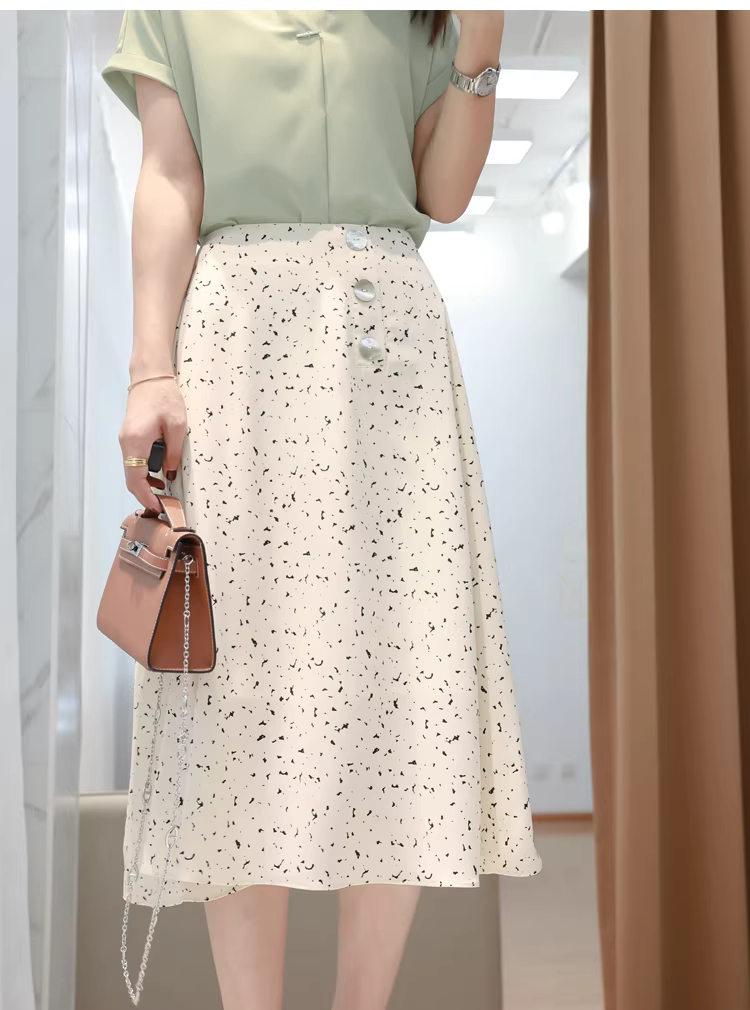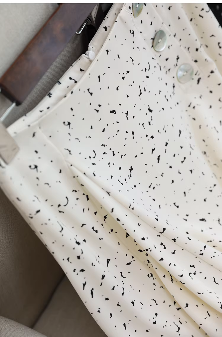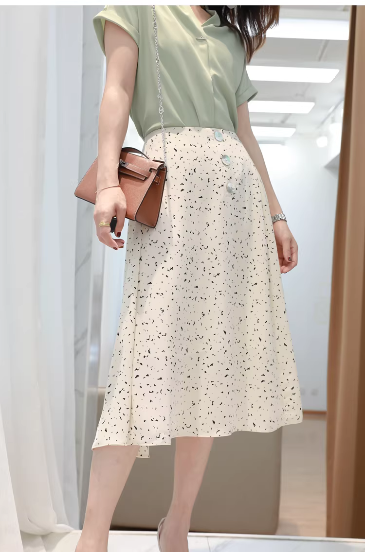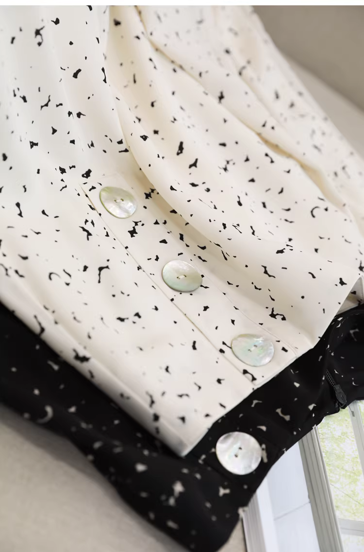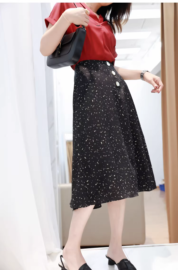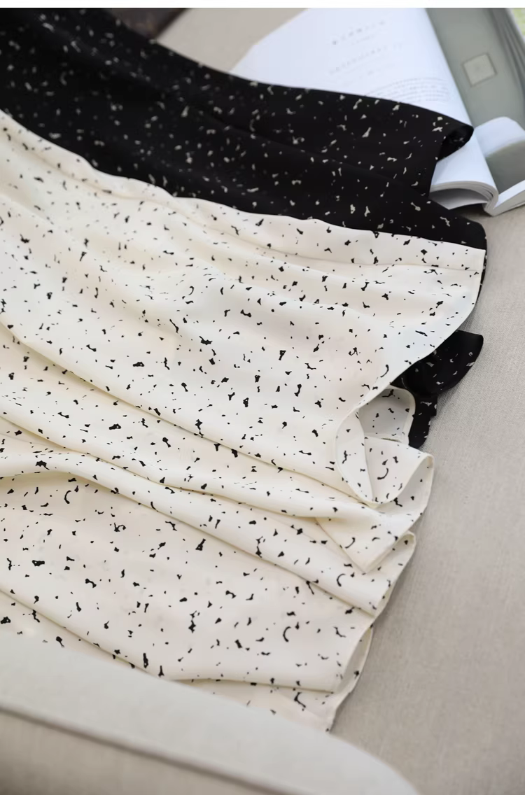 - Thiết kế độc đáo~Váy chữ A cổ điển chấm bi~Váy xòe rộng váy ngắn dành cho nữ mùa hè kiểu dáng dài trung bình