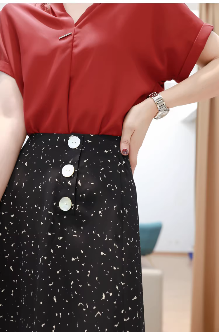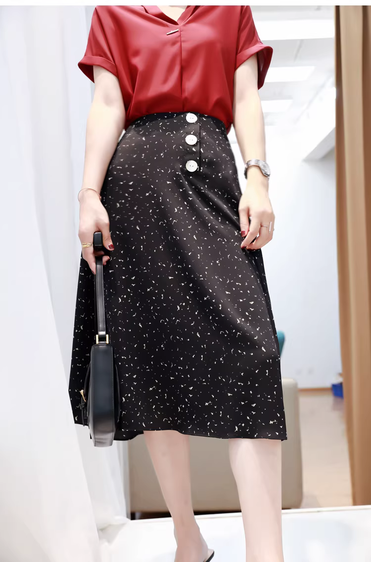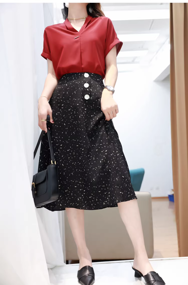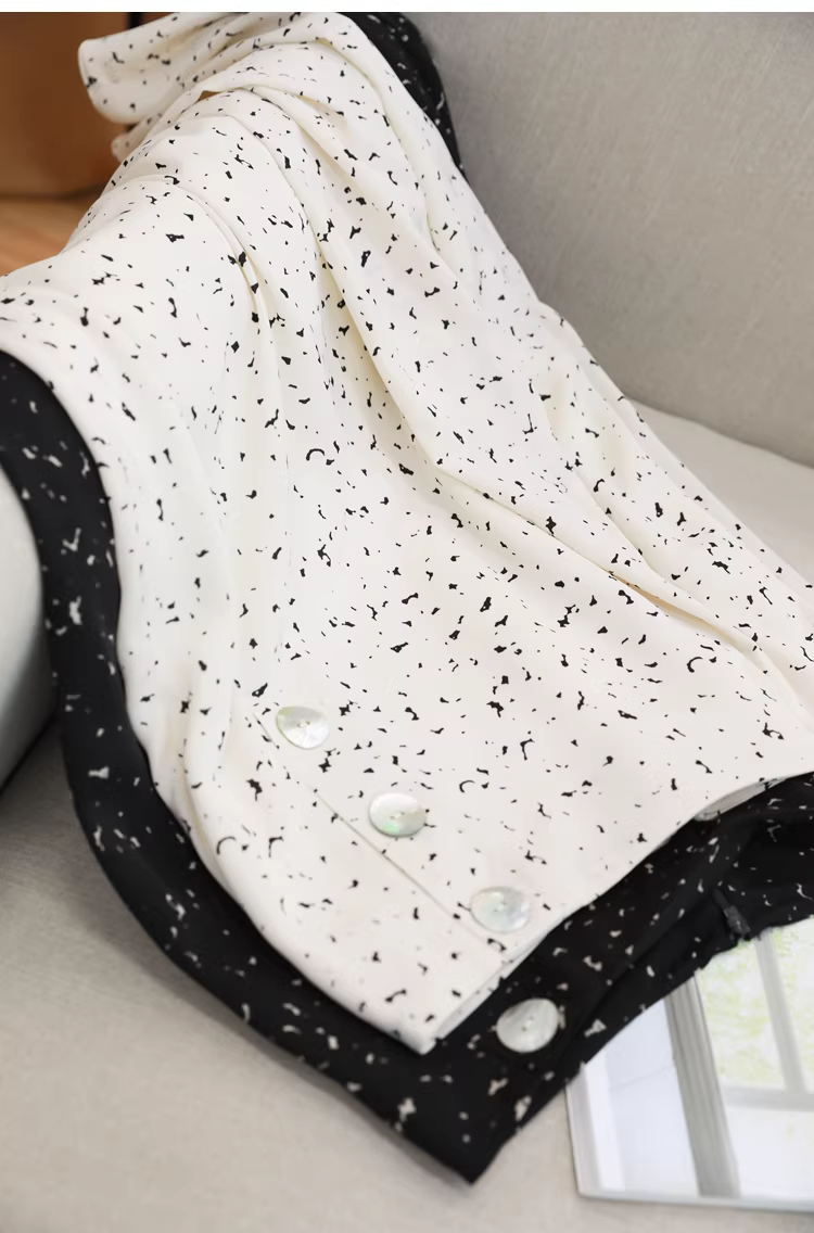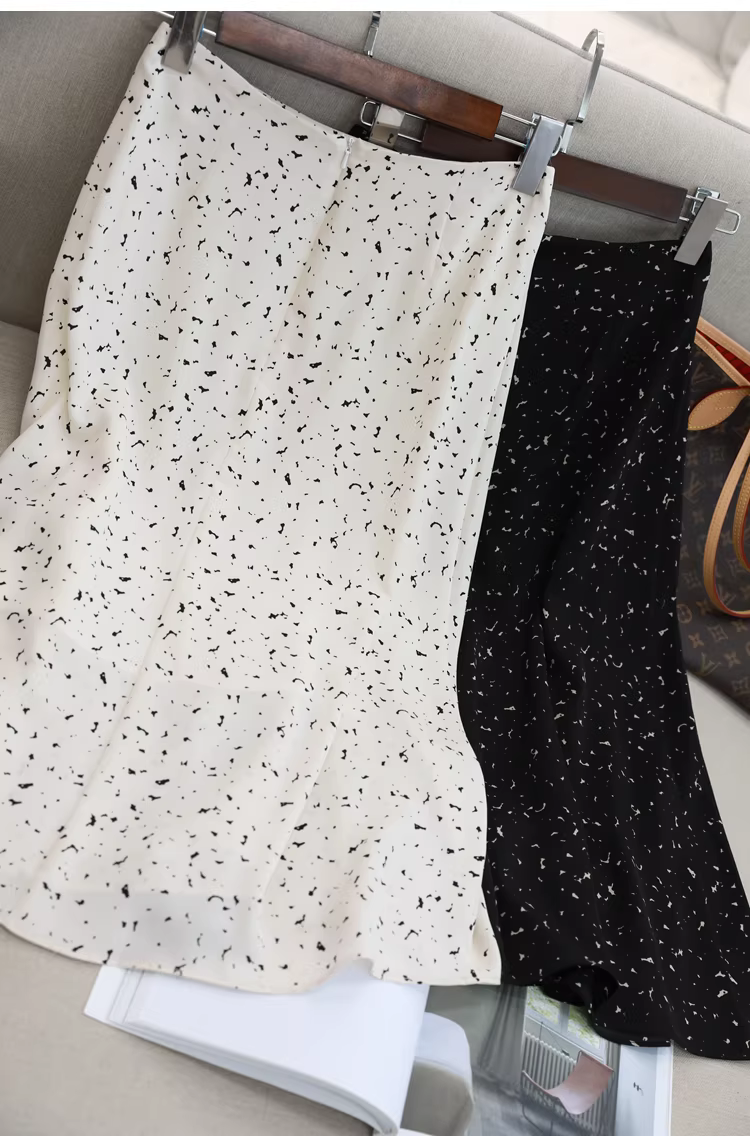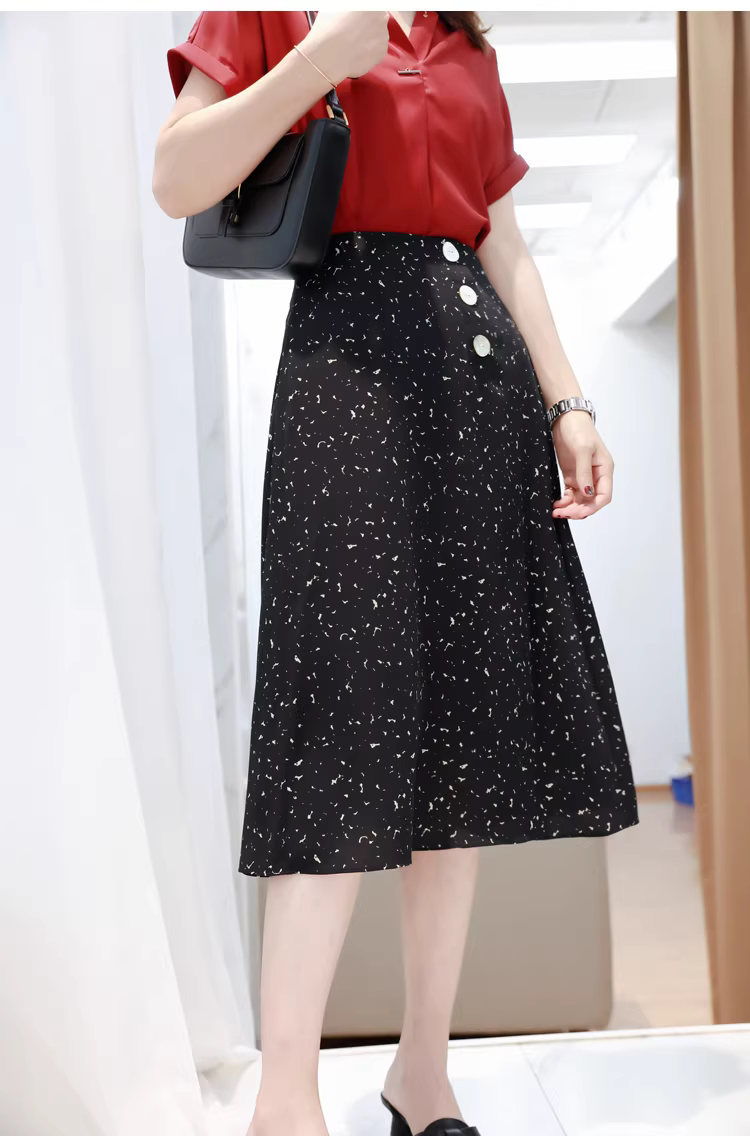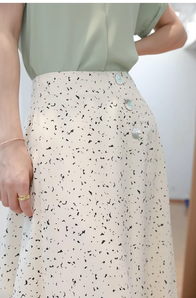 - Thiết kế độc đáo~Váy chữ A cổ điển chấm bi~Váy xòe rộng váy ngắn dành cho nữ mùa hè kiểu dáng dài trung bình