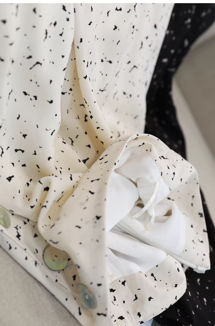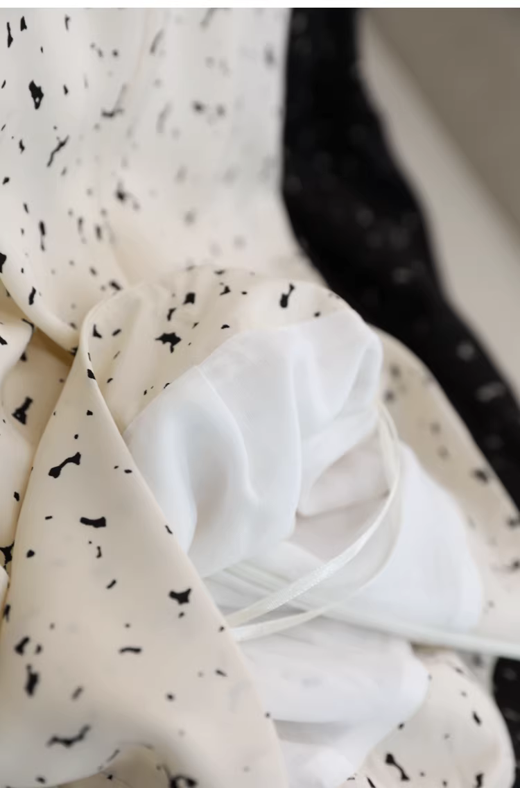 Thiết kế độc đáo~Váy chữ A cổ điển chấm bi~Váy xòe rộng váy ngắn dành cho nữ mùa hè kiểu dáng dài trung bình