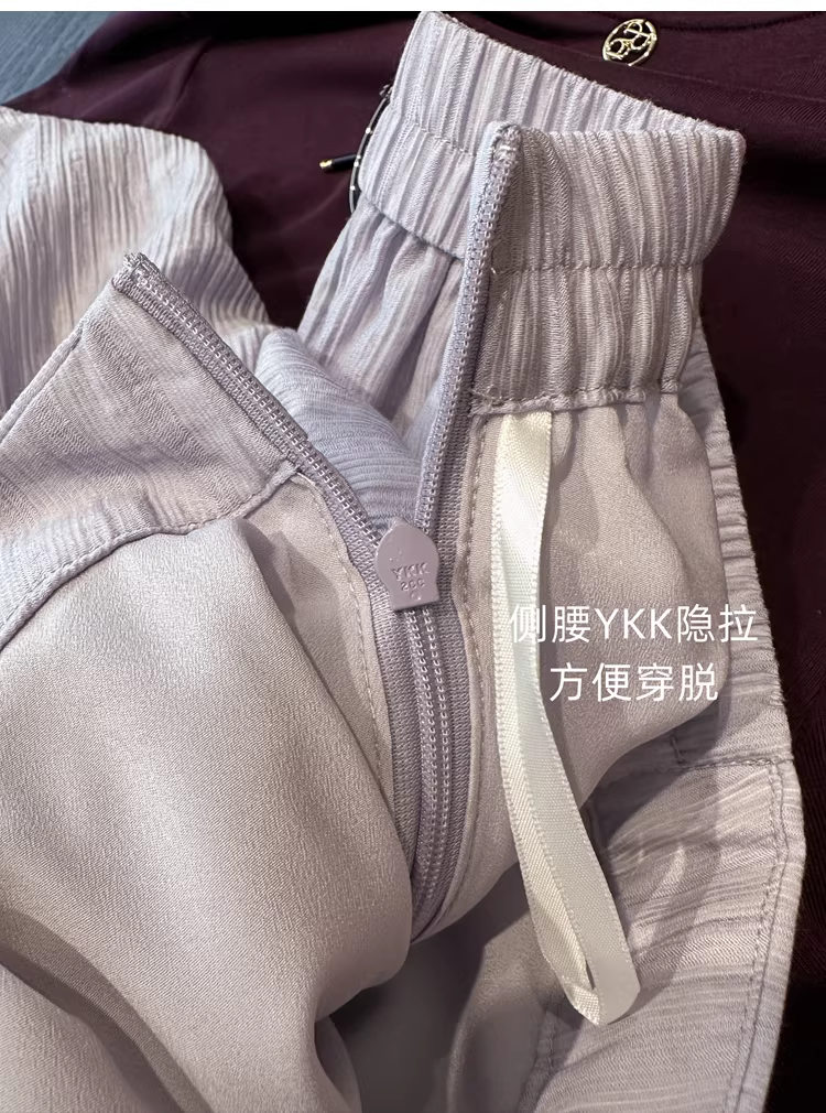 高腰,后腰半松紧,侧腰有隐形拉链,方便穿脱