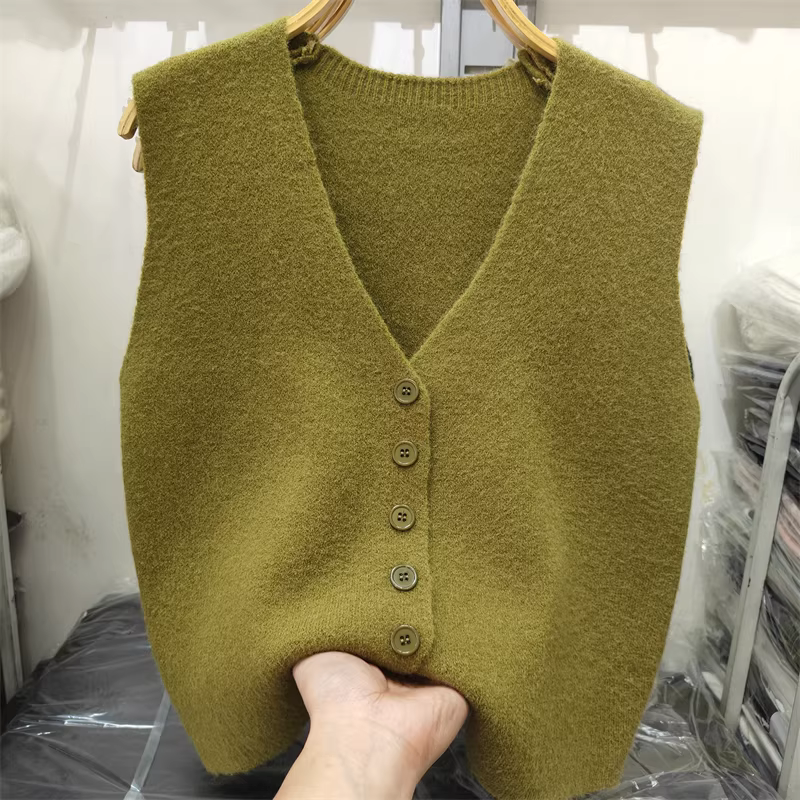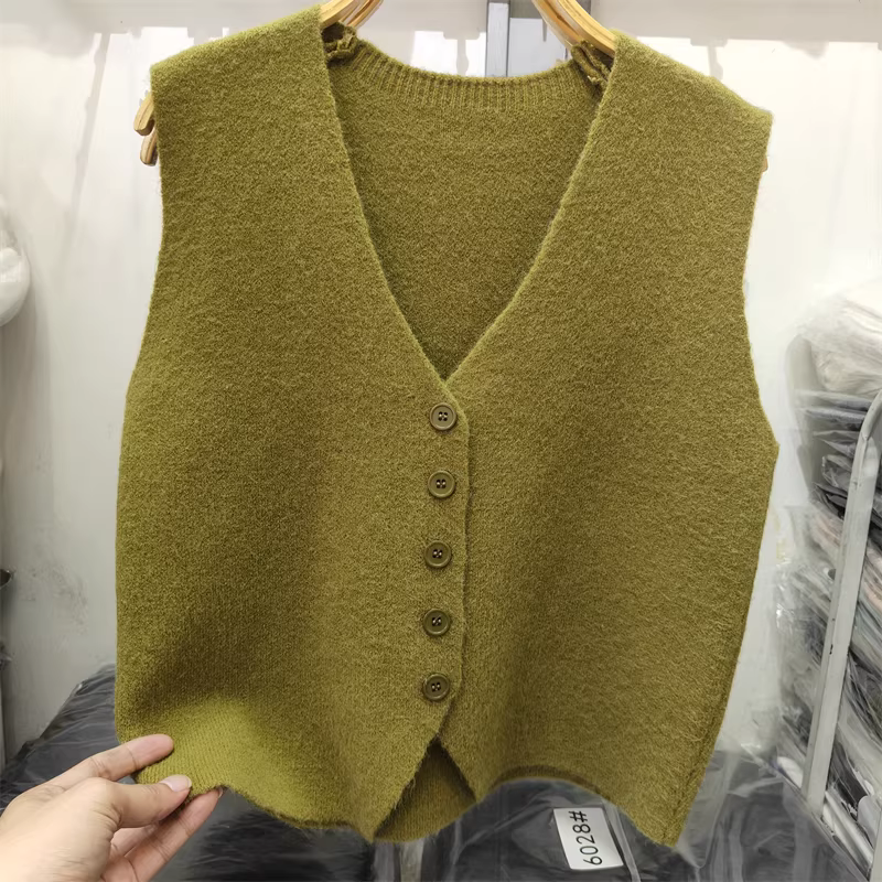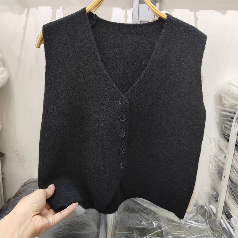 Thương mại quốc tế Nanyou Quần áo nữ phong cách châu Âu, áo len cắt nhãn, áo len dệt kim, áo khoác ngoài phong cách lười biếng, áo vest nhỏ nhiều lớp.