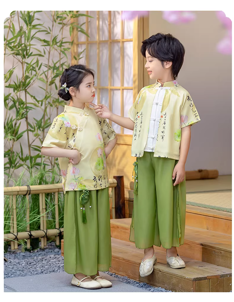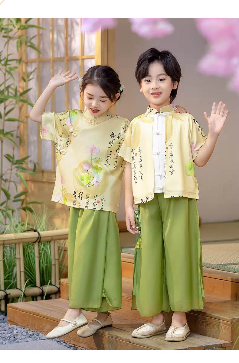 - Trang phục biểu diễn truyền thống của học sinh tiểu học, bộ đồ Hanfu trẻ em, trang phục cải tiến phong cách Trung Hoa thời nhà Đường cho mẫu giáo mùa xuân thu 2025.