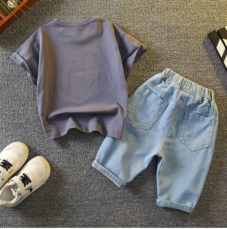 Trang phục mùa hè cho bé trai 2025, kiểu dáng mới thời trang, quần áo thể thao trẻ em hợp xu hướng, quần áo mùa hè phong cách đường phố cho trẻ em, áo ngắn tay mùa hè