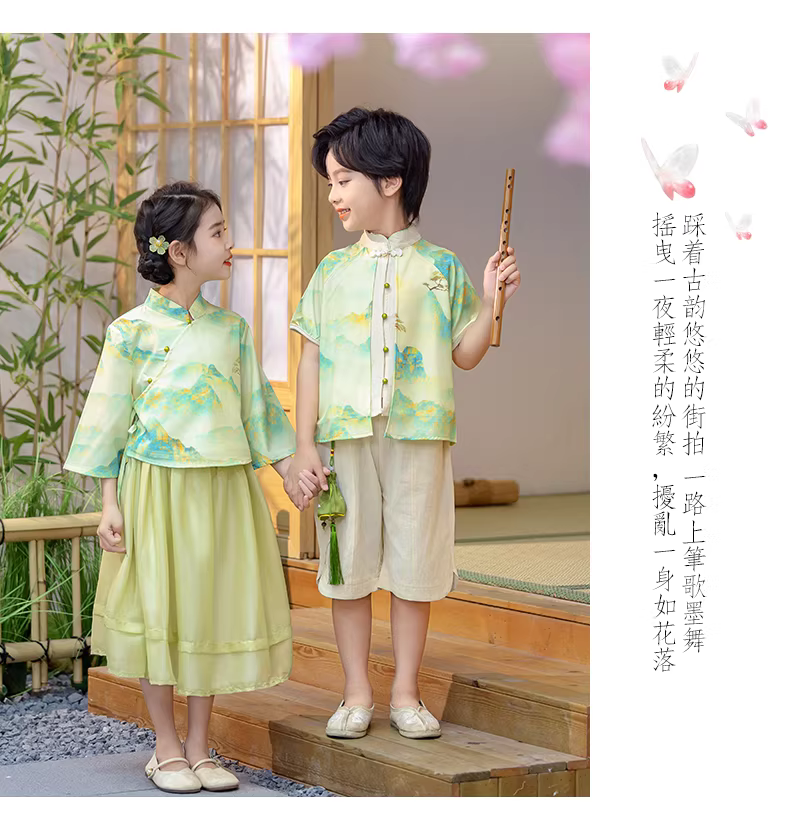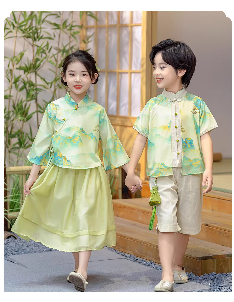 - Trang phục mùa hè Hanfu đồng phục mẫu giáo được cải tiến theo phong cách Trung Hoa Đồng phục lớp biểu diễn Ngày thiếu nhi Trang phục biểu diễn phong cách cổ xưa Tranh phong cảnh phong cách Đường thời trang