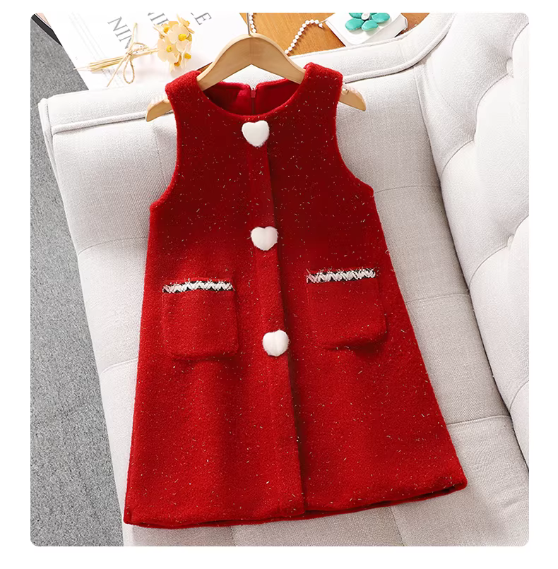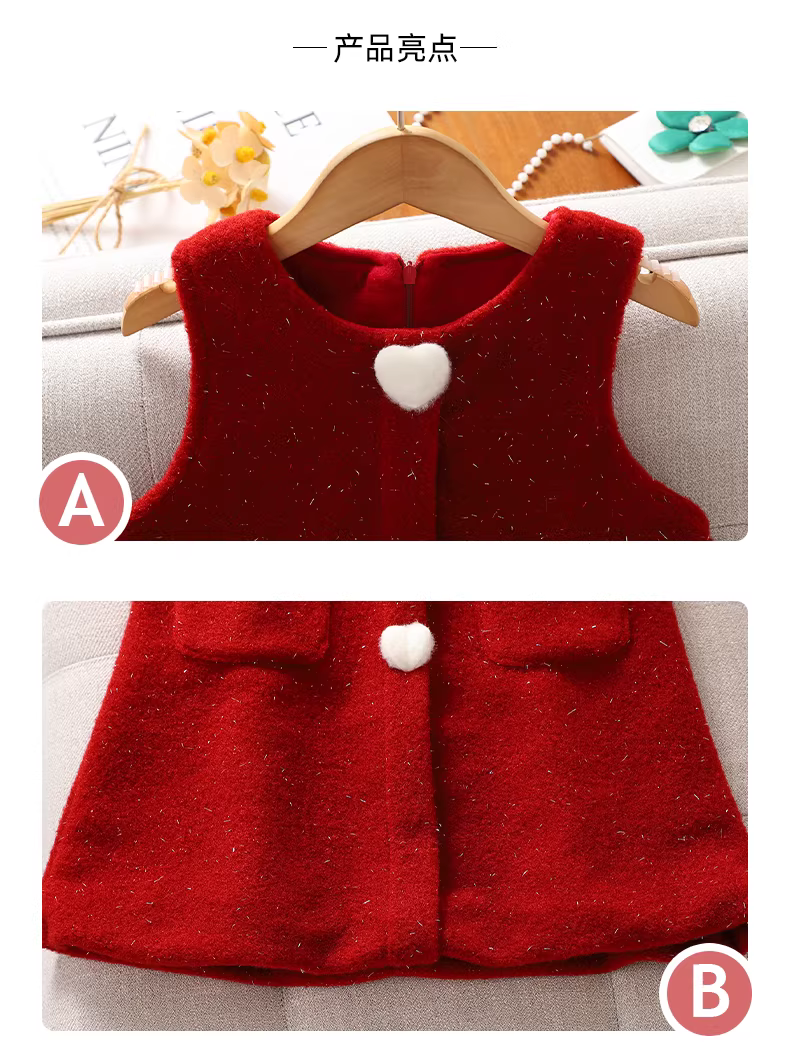 - Trang phục năm mới cho bé gái mùa thu đông 2025, bộ váy lót lông cừu cho trẻ em, bộ đồ năm mới cho bé gái, áo len váy mùa đông
