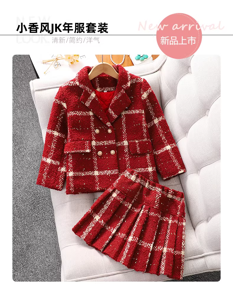 - Trang phục năm mới kiểu Chanel nhỏ nhắn dành cho bé gái Váy đỏ Trang phục chào mừng năm mới mùa thu đông Trang phục năm mới dành cho trẻ em JK Quần áo năm mới Váy mùa đông dành cho bé gái