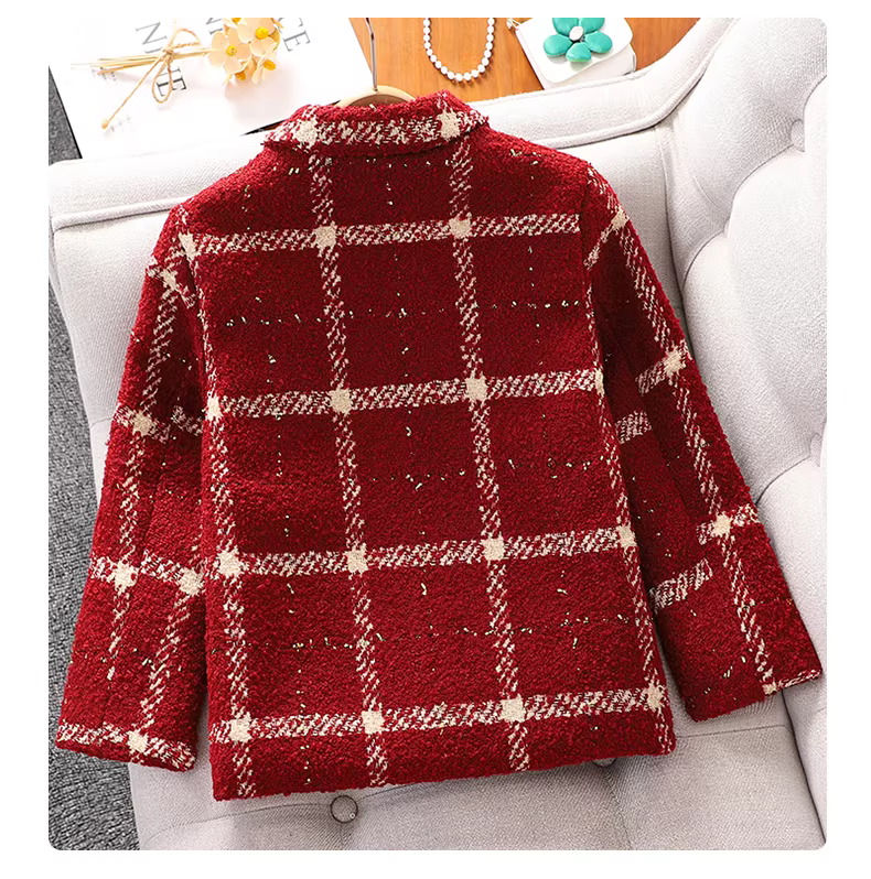 Trang phục năm mới kiểu Chanel nhỏ nhắn dành cho bé gái Váy đỏ Trang phục chào mừng năm mới mùa thu đông Trang phục năm mới dành cho trẻ em JK Quần áo năm mới Váy mùa đông dành cho bé gái