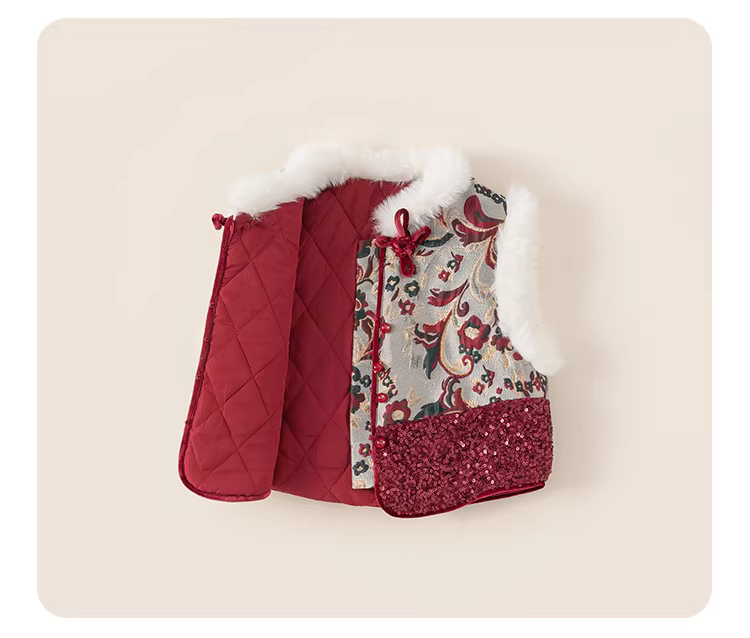 - Trang phục Tết của bé gái, áo vest kiểu Trung Quốc mới cho trẻ em, trang phục lễ hội mùa đông cho bé gái một tuổi, trang phục Hanfu cho bé gái, quần áo mùa đông có đệm màu đỏ.
