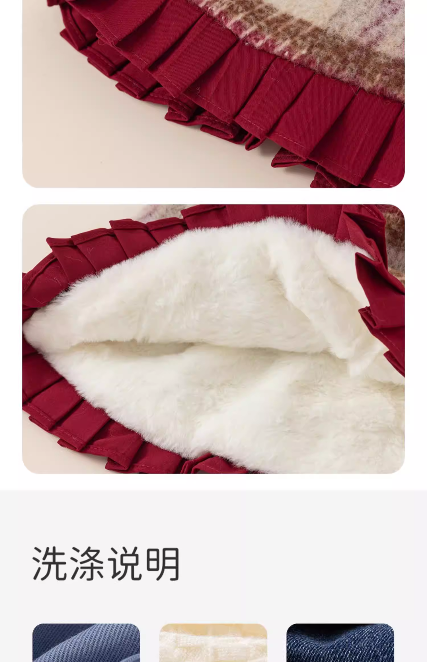 Trang phục thu đông cho bé gái, trang phục Tết Nguyên đán cho bé gái, trang phục kiểu Chanel nhỏ nhắn cho bé gái với chất liệu lông cừu, trang phục mùa đông công chúa nhỏ màu đỏ, sành điệu.