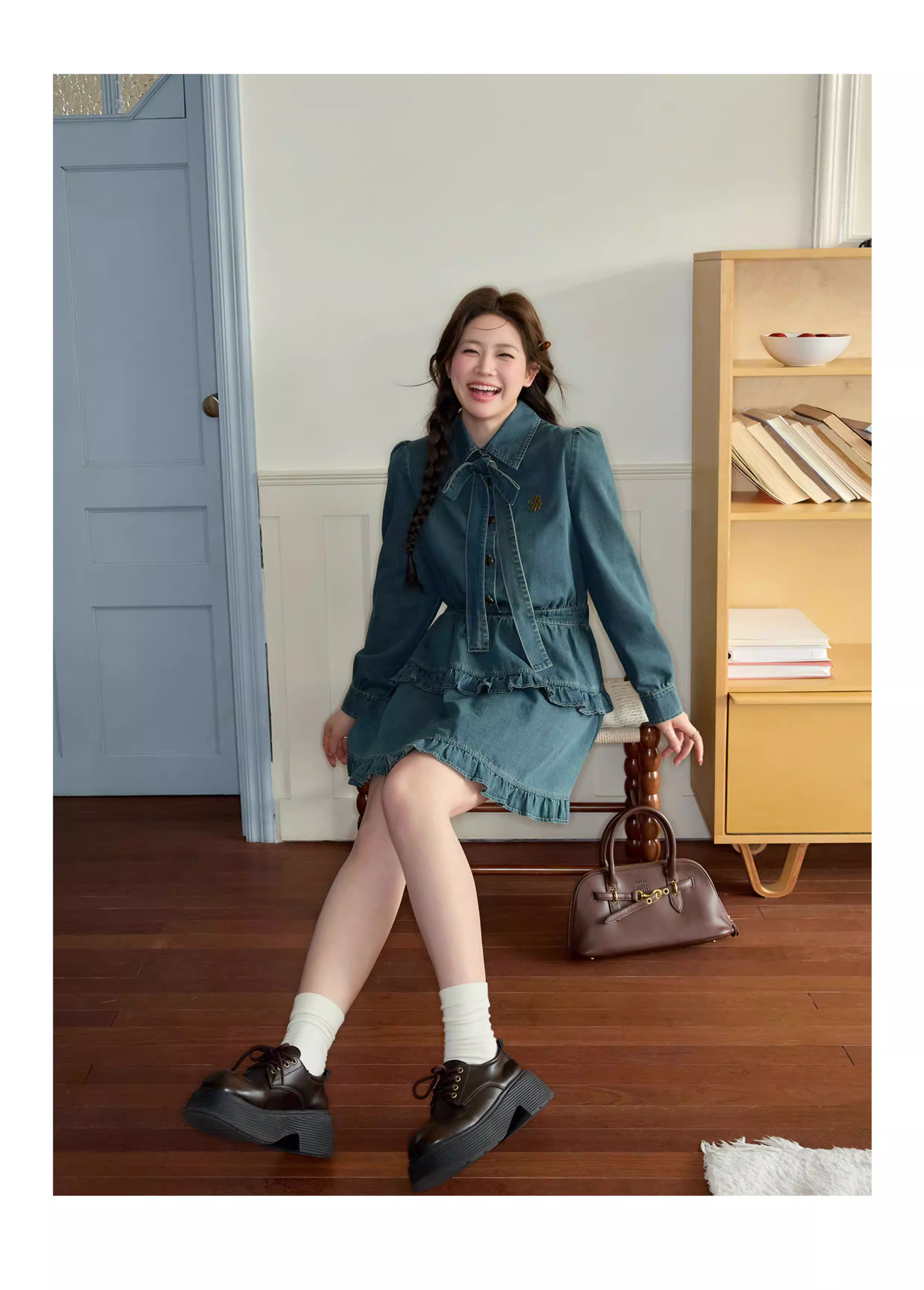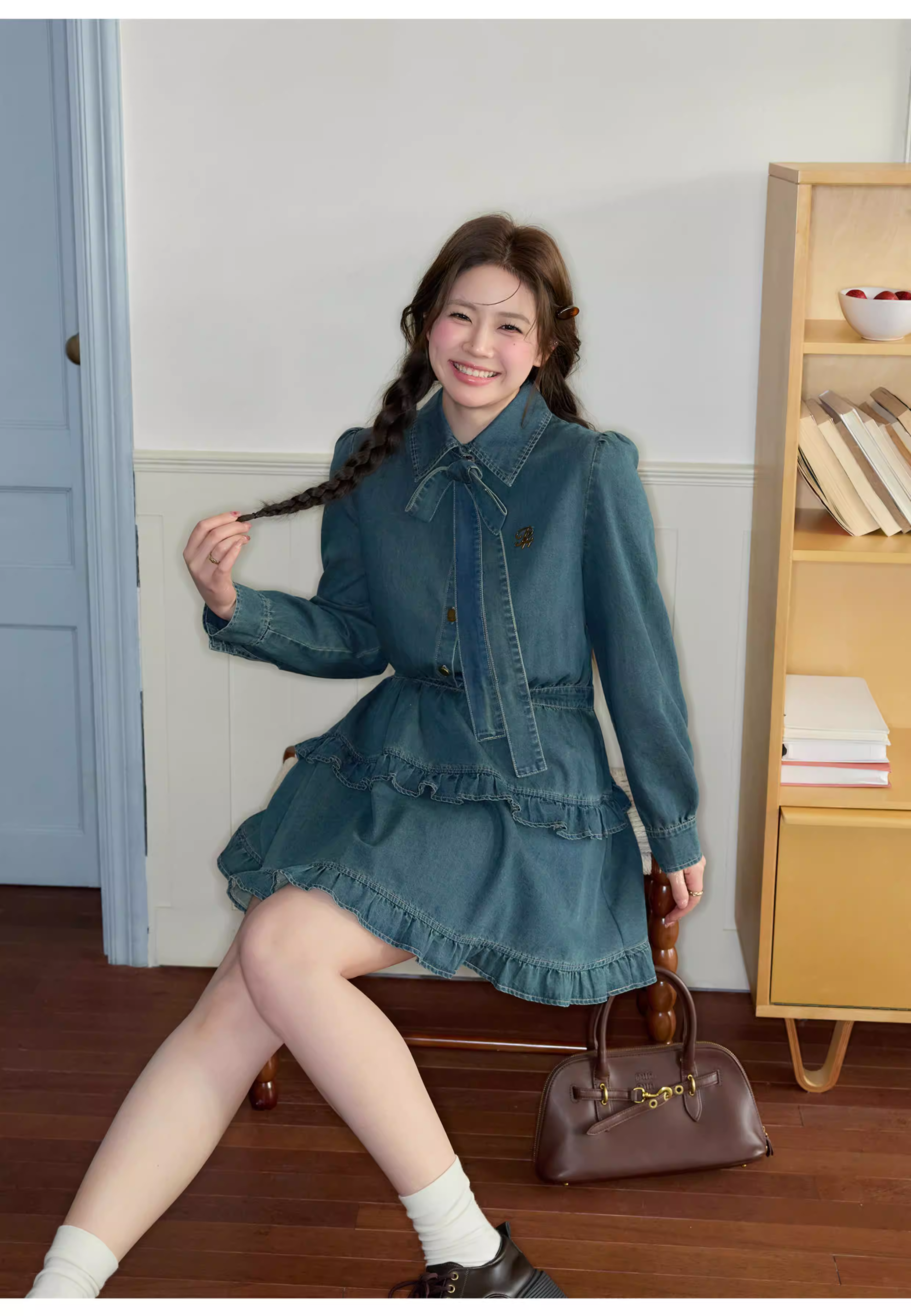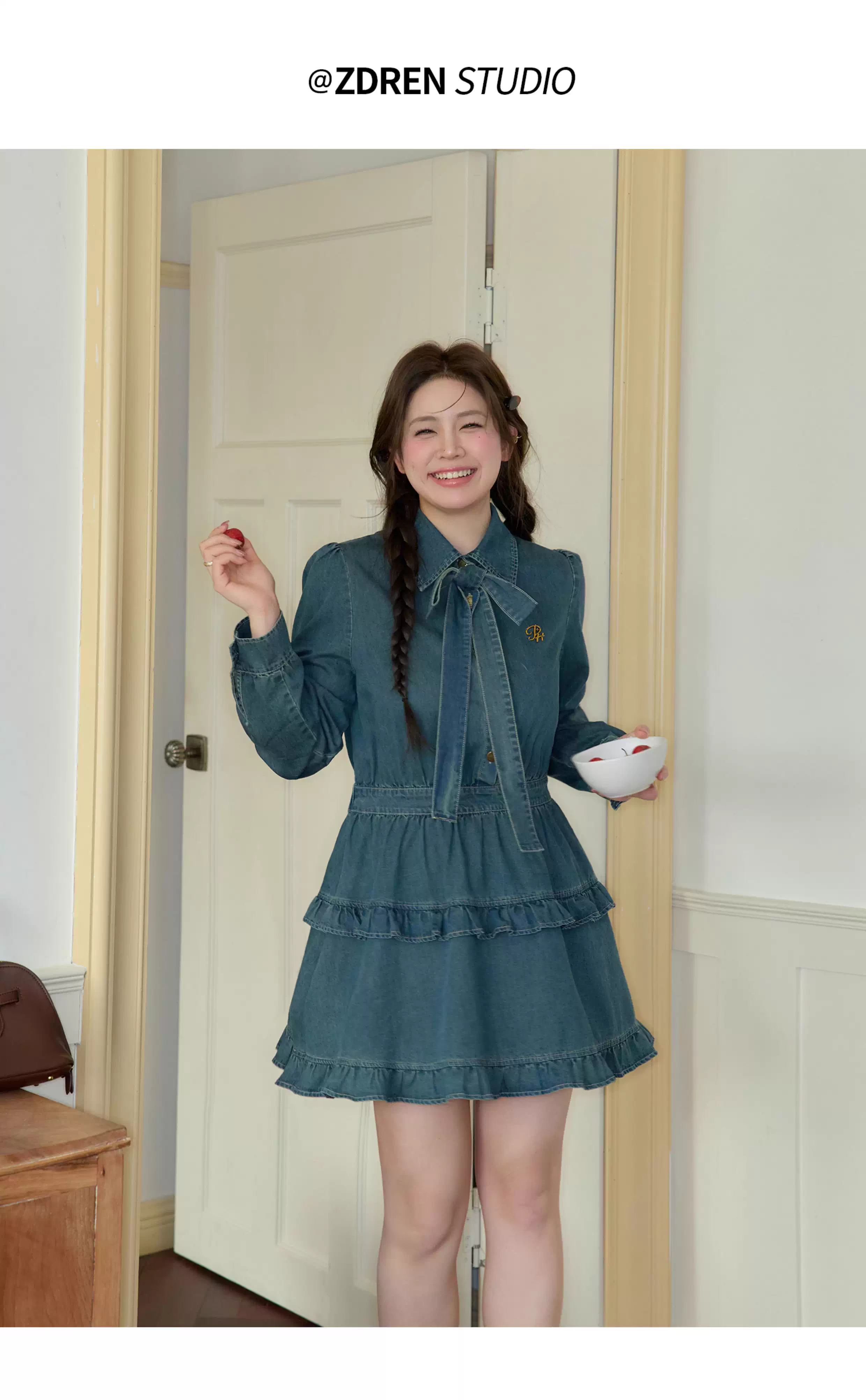- Trang phục thu sớm 2025 của Zhang Daren dành cho nữ cỡ lớn, đầm denim tôn dáng thiết kế độc đáo, chân váy chữ A.