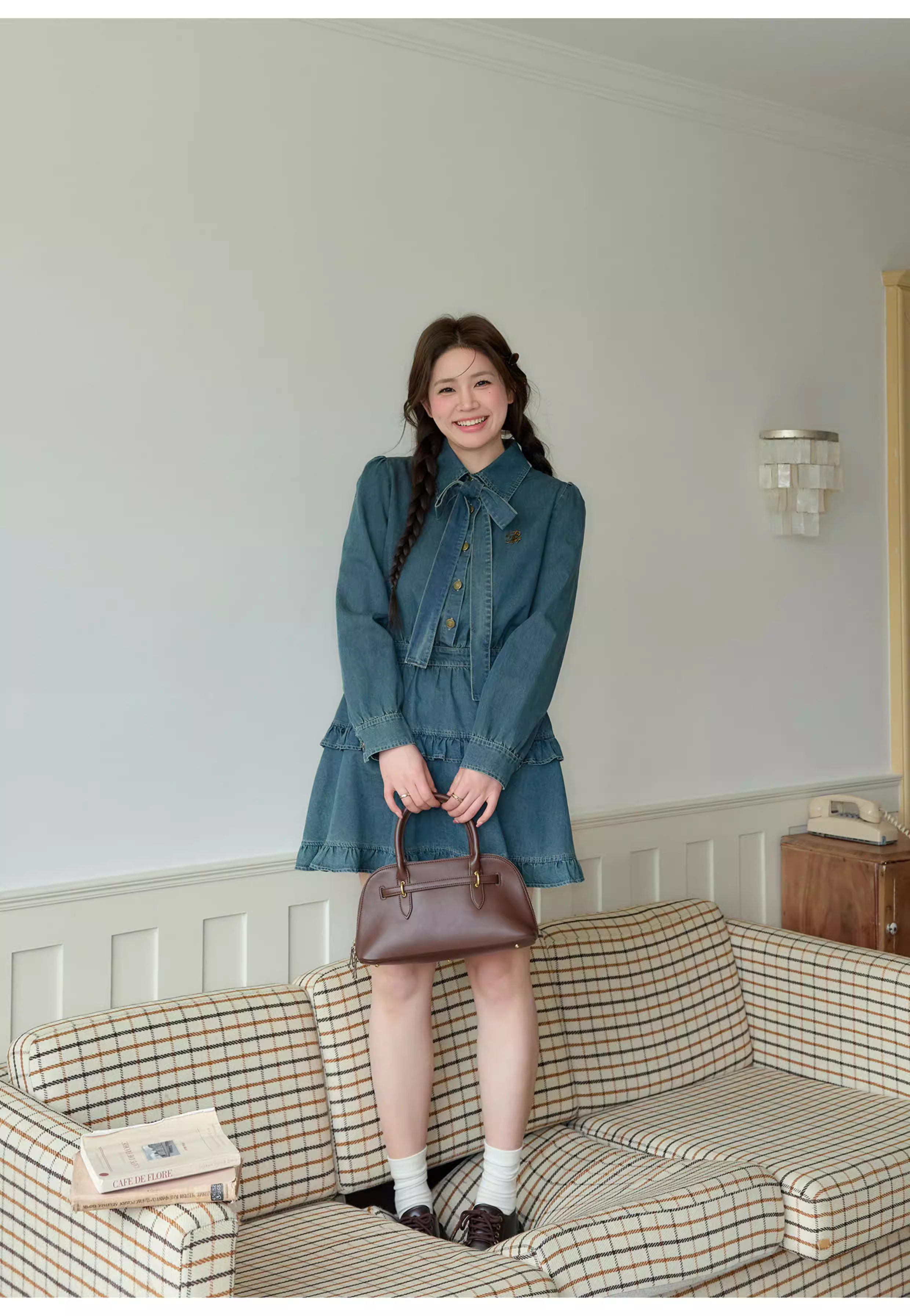 Trang phục thu sớm 2025 của Zhang Daren dành cho nữ cỡ lớn, đầm denim tôn dáng thiết kế độc đáo, chân váy chữ A.