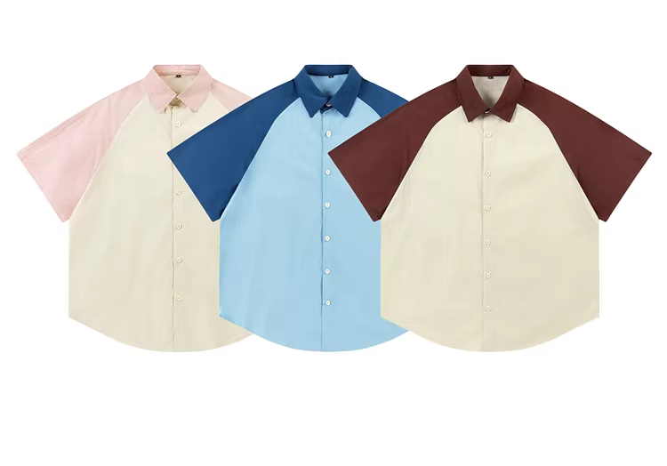 - Từ Mars Áo sơ mi ngắn tay dáng rộng phong cách Mỹ trong trẻo và lãng mạn kiểu Raglan mới giản dị cổ điển dành cho mùa hè