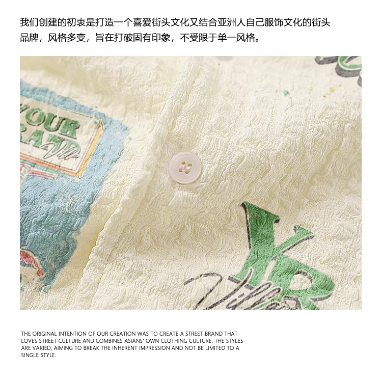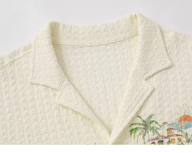 - Từ Mars Seaside Beach Summer Fun Print Áo sơ mi cổ Cuba dáng rộng tay ngắn Unisex Ins
