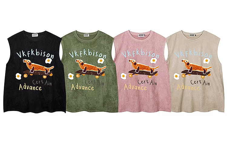 Từ sao Hỏa, anh ấy rất thích trượt ván, áo vest không tay in hình hoạt hình cá tính theo phong cách Mỹ, áo rộng kiểu đường phố