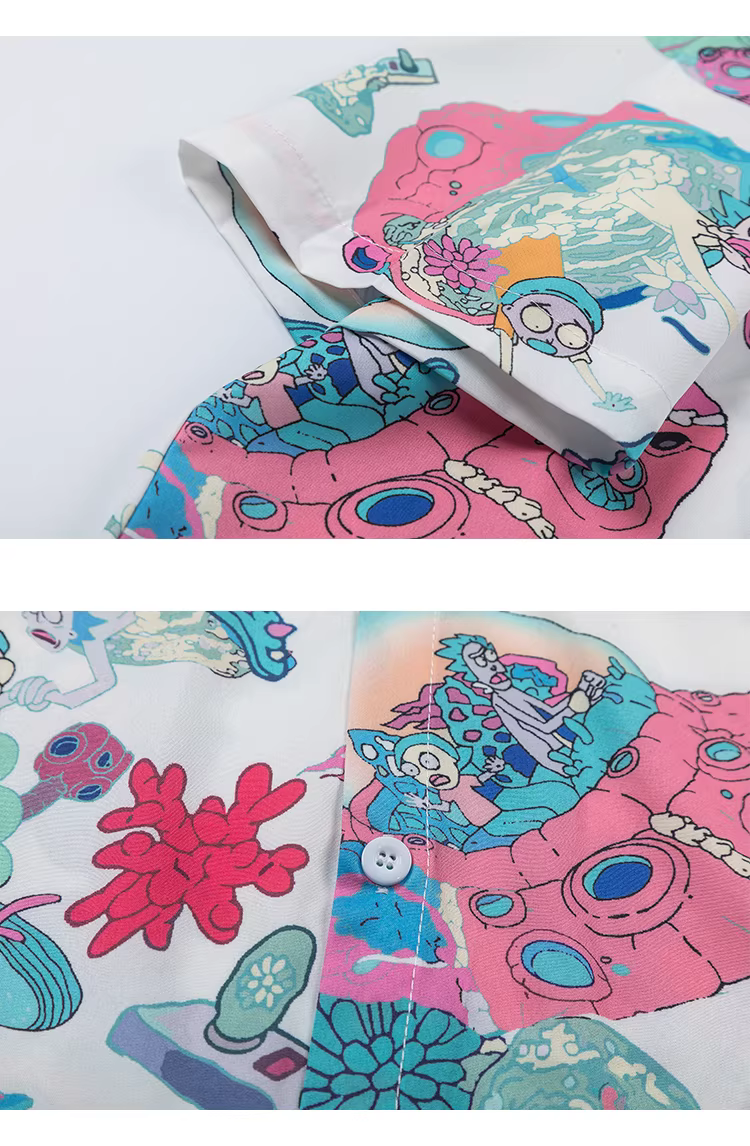 Từ sao Hỏa, anh chàng này đang ngắm nhìn một chiếc áo sơ mi ngắn tay in họa tiết hoạt hình sáng tạo theo phong cách Mỹ, kiểu dáng rộng rãi, thích hợp cho mùa hè.