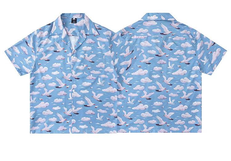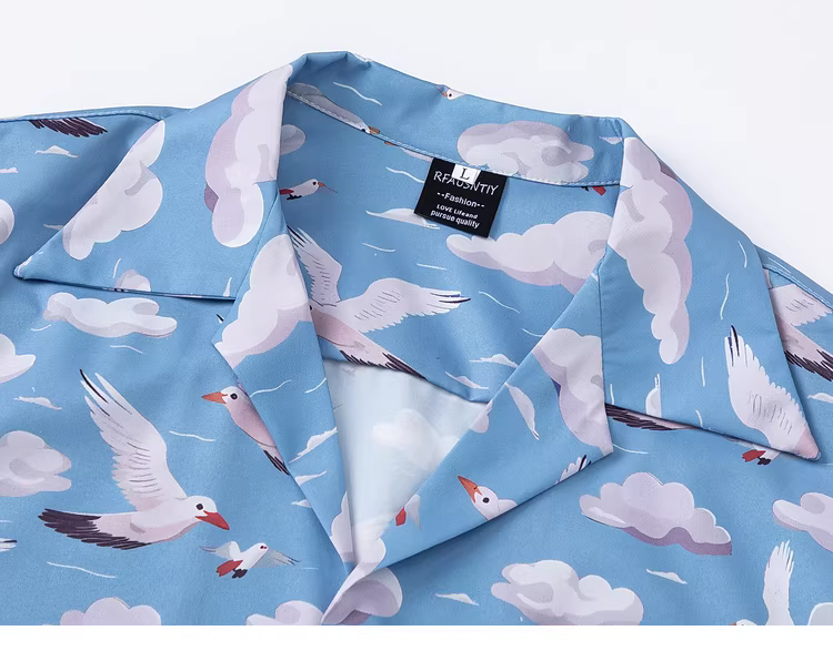 Từ sao Hỏa, áo sơ mi ngắn tay cổ Cuba dáng rộng, kiểu cổ điển, in hình đám mây dành cho các cặp đôi.