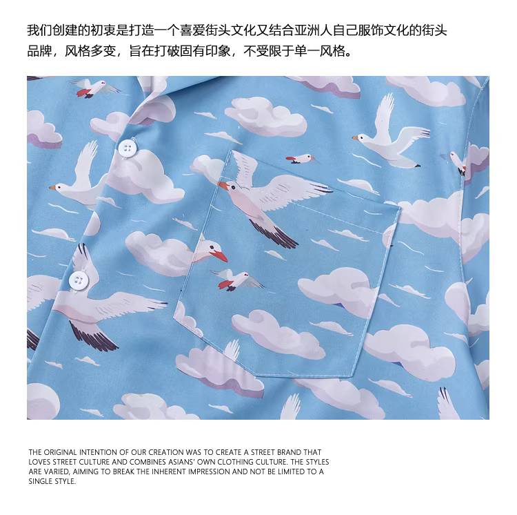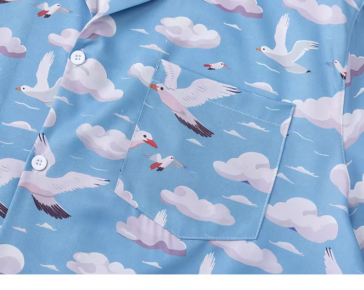 - Từ sao Hỏa, áo sơ mi ngắn tay cổ Cuba dáng rộng, kiểu cổ điển, in hình đám mây dành cho các cặp đôi.