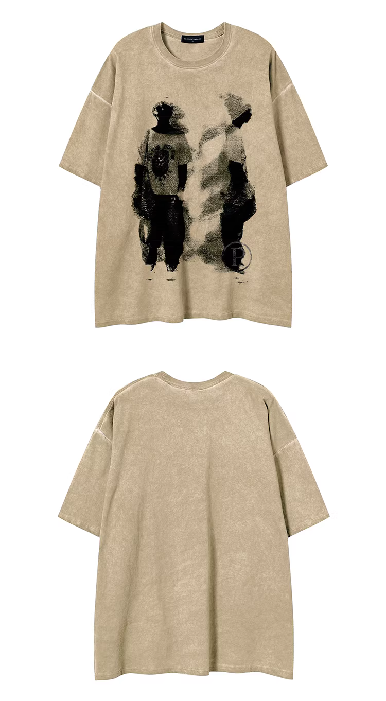 Từ sao Hỏa, đừng nói chuyện với nhau, phong cách đường phố Âu Mỹ, in hình nhân vật đã qua xử lý, áo thun ngắn tay dáng rộng cho cặp đôi.