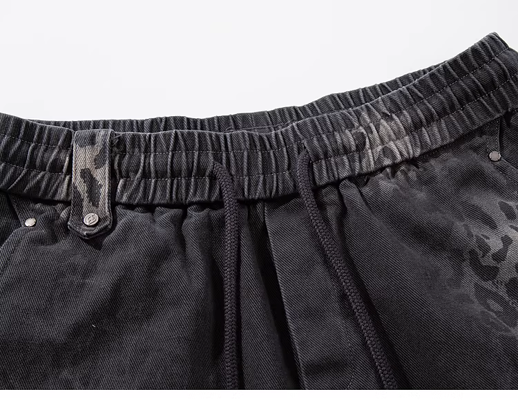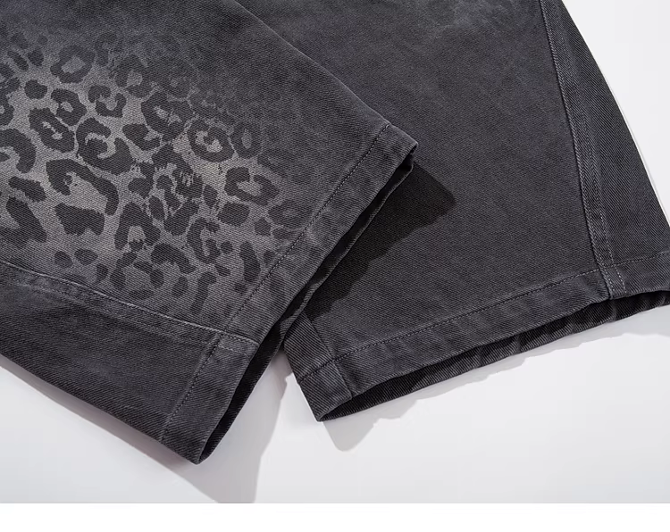 Từ sao Hỏa, hãy đi từng bước một, quần jean dáng rộng in họa tiết da báo thời thượng phong cách Trung Quốc, quần ống lửng dành cho nam và nữ.
