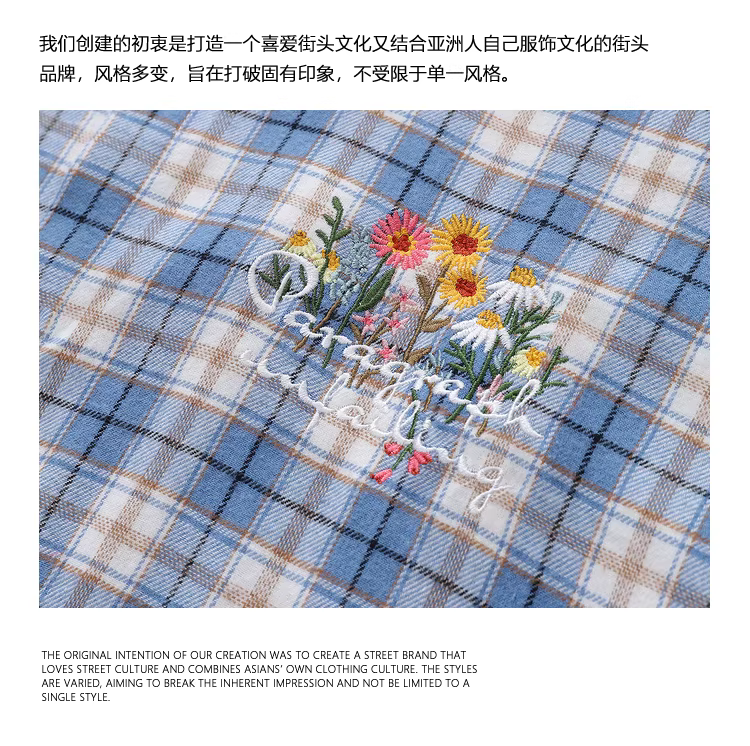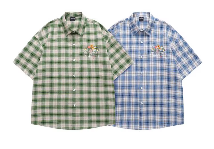 Từ sao Hỏa, hoa nở rộ, phong cách preppy trong mùa hè, áo sơ mi ngắn tay họa tiết hoa kẻ sọc rộng rãi, đa năng, giản dị