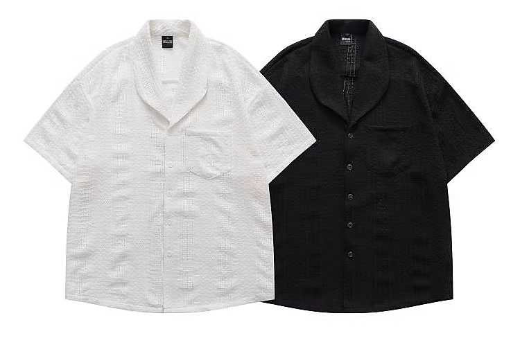 Từ sao Hỏa không còn trống trơn: Áo sơ mi ngắn tay dáng rộng đơn giản kiểu Trung Quốc, thiết kế rỗng màu trơn, phong cách mùa hè